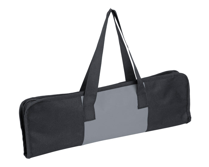 estuche portátil con utensilios para bbq. incluye: pinzas para carne, tenedor y volteador.