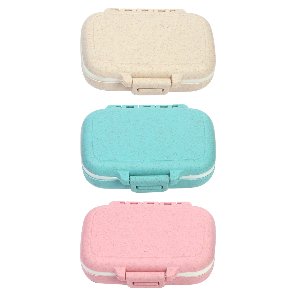 pastillero fabricado en fibra de trigo, con 3 compartimentos lo suficientemente amplios para almacenar múltiples píldoras/pastillas, empaque de silicón y broche de seguridad en la tapa, gracias a su diseño compacto y que es ligero es fácil y cómodo de transportar.