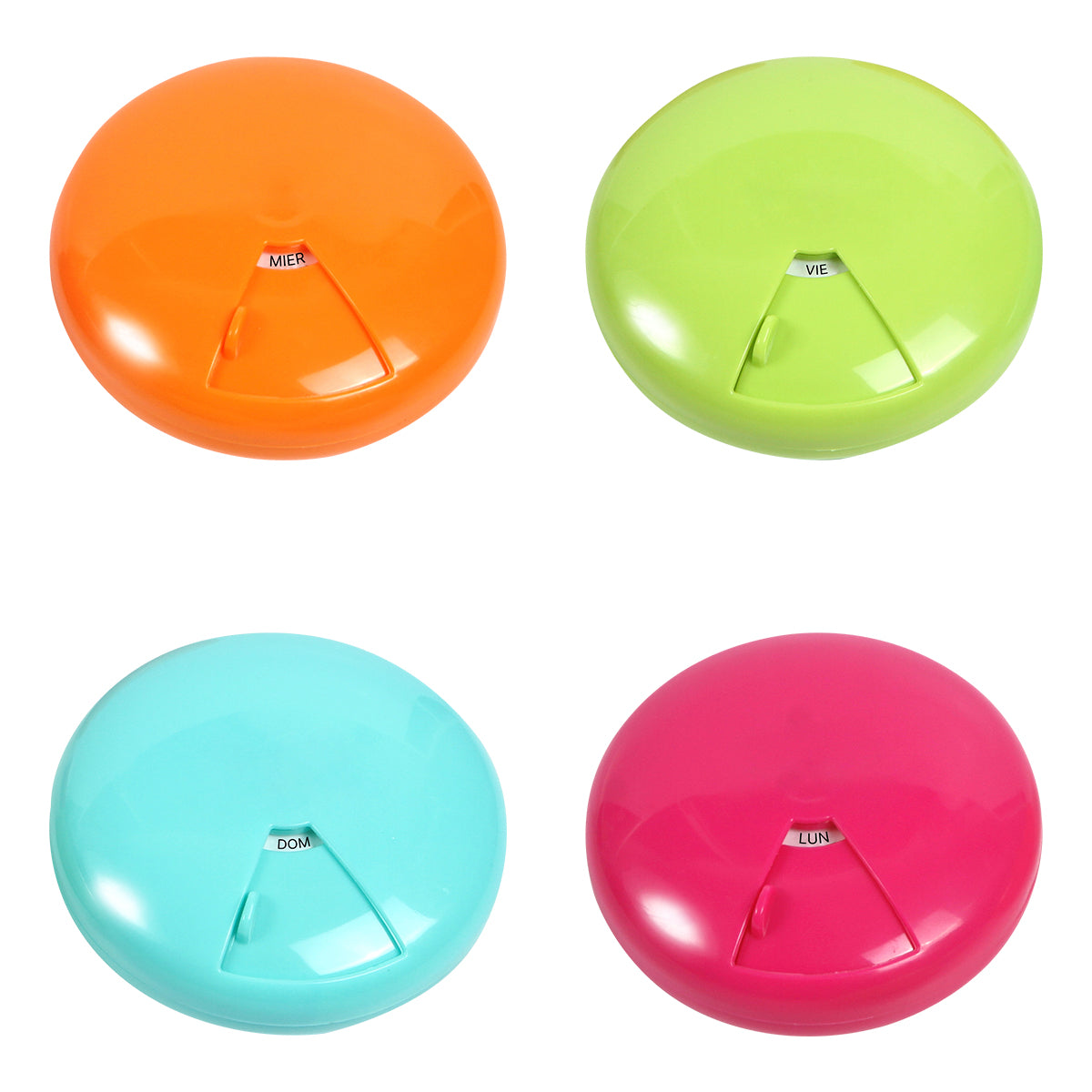 pastillero con 7 compartimentos individuales, cada uno diseñado para representar un día de la semana, ofrece una solución organizada y práctica para aquellos que necesitan llevar consigo sus medicamentos o suplementos durante la semana. fabricado en plástico abs y pp.