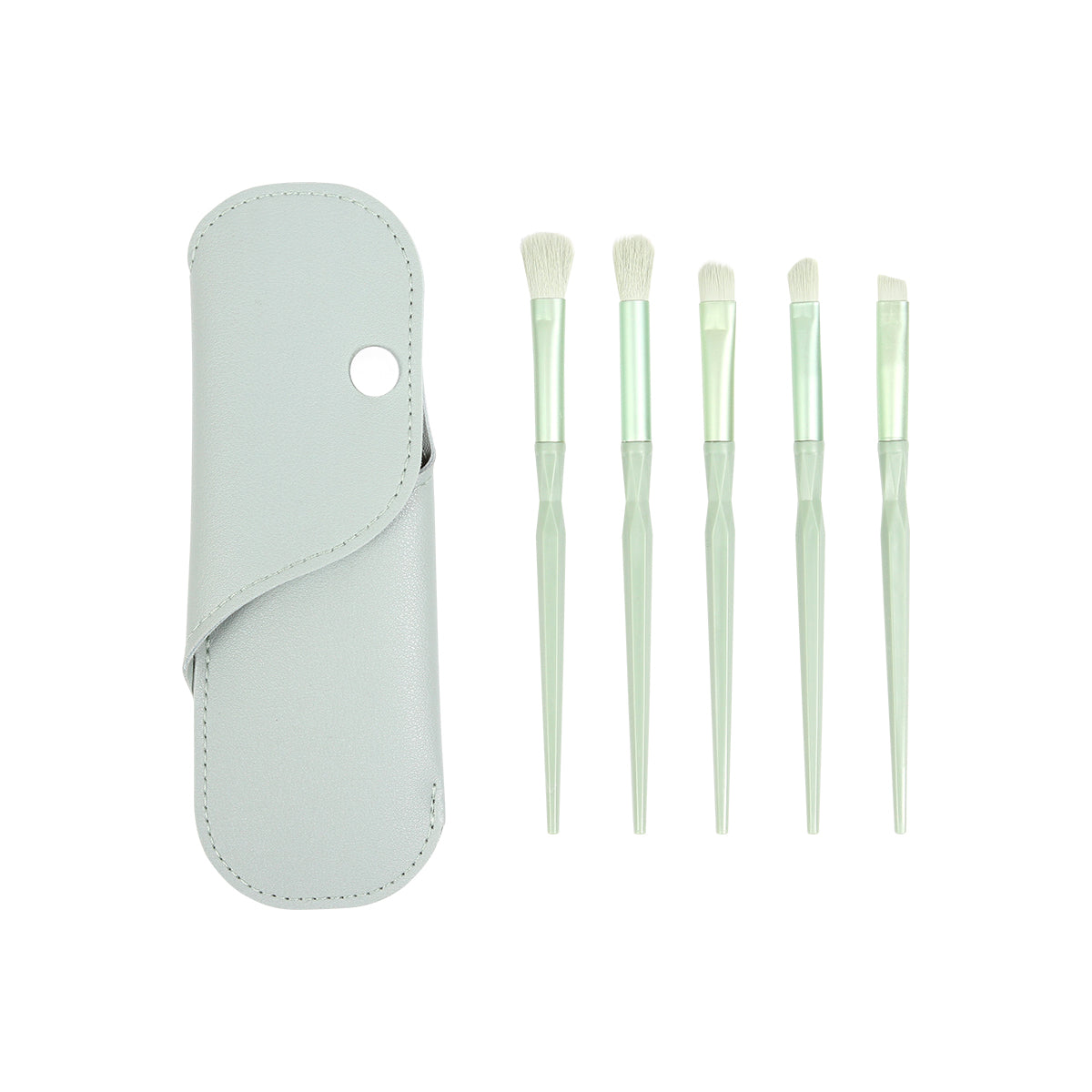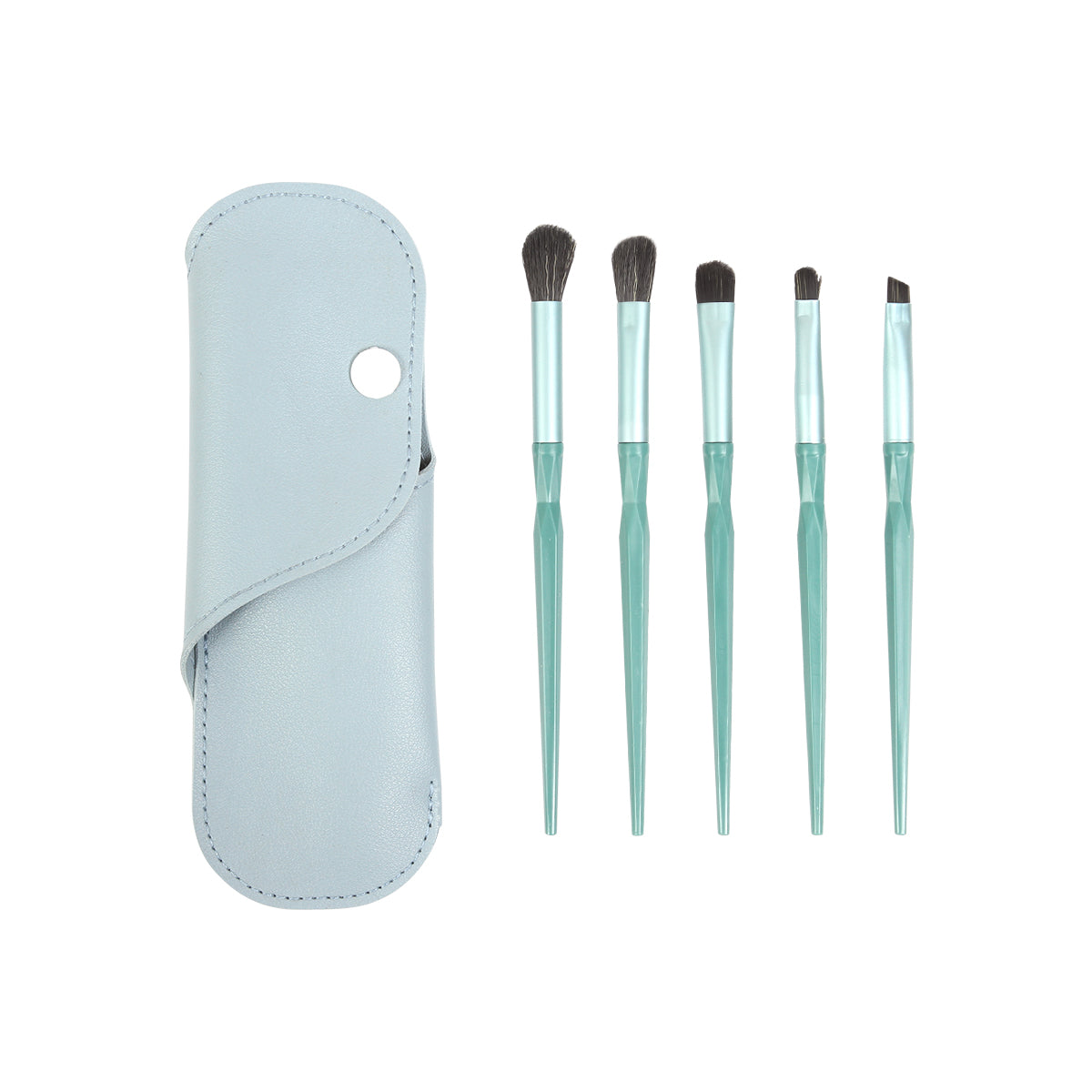 set de brochas para maquillaje con estuche, fabricadas en poliestireno (ps) con cerdas fabricadas en nailon y férula de aluminio . incluye 5 brochas y estuche fabricado en cuero sintético (pu).