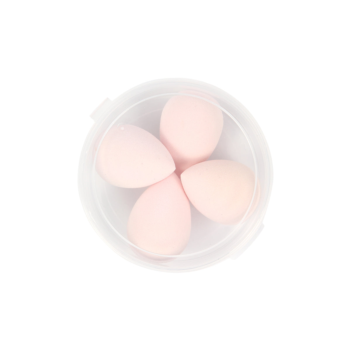 set de 4 esponjas para maquillaje, fabricadas en poliuretano hidrofílico. incluyen estuche de plástico. ideales para llevar en tu bolso por su tamaño compacto.