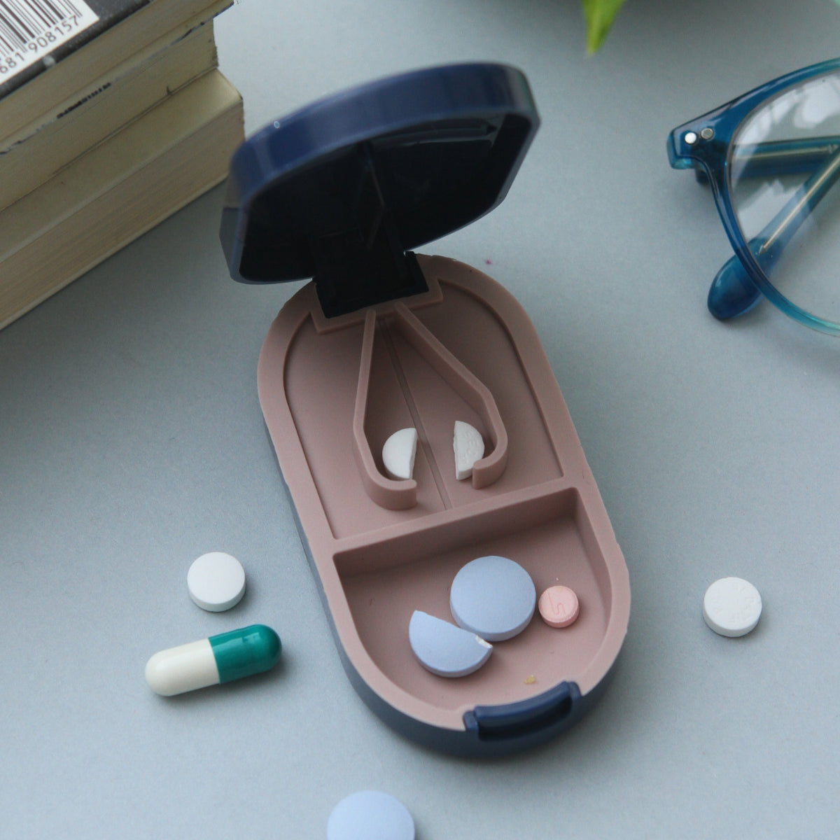 pastillero ovalado fabricado en plástico tipo abs, caracterizado por su resistencia a impactos. este artículo es un accesorio práctico y conveniente para organizar y llevar tus medicamentos de manera segura, cuenta con varios compartimentos individuales con suficiente espacio para almacenar múltiples pastillas o cápsulas. cuenta además con una pequeña cuchilla para partir las pastillas si es el caso.