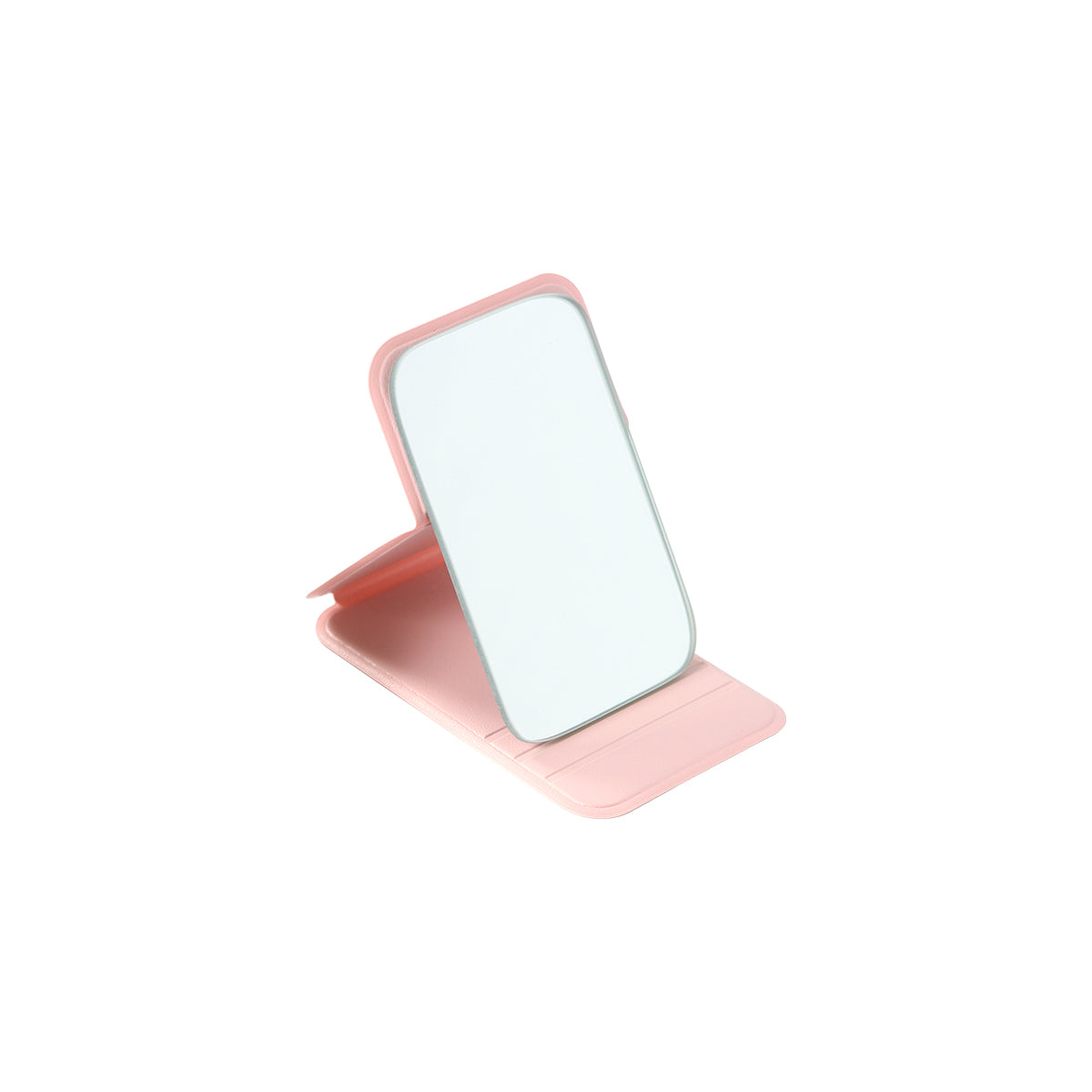espejo de bolsillo fabricado en curpiel en forma rectangular. cuenta con relieves en la tapa que permiten montar el espejo a la altura deseada y facilitar su uso. gracias a su tamaño y a que es bastante ligero, es ideal para llevarlo contigo todos los días.