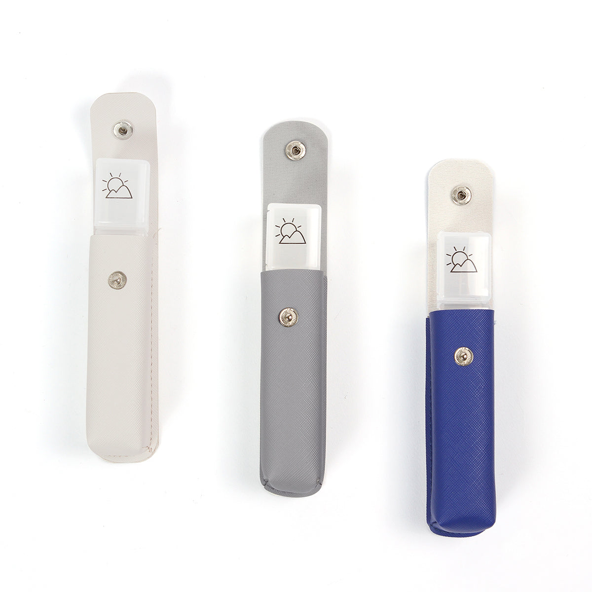 pastillero rectangular de plástico con funda de curpiel con cierre de broche. el pastillero cuenta con tres compartimentos individuales para pastillas o cápsulas. es un accesorio práctico y conveniente para organizar y llevar tus medicamentos de manera segura.