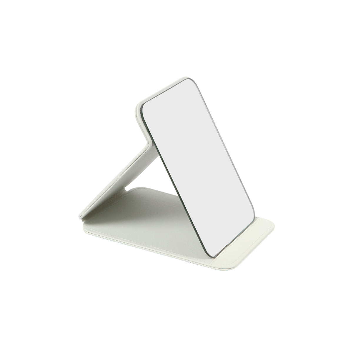 espejo rectangular jumbo con soporte y funda fabricada en poliuretano y esquinas redondeadas. su funda sirve para montarlo y ajustarlo y así poder usarlo como espejo de tocador y/o espejo de mano.