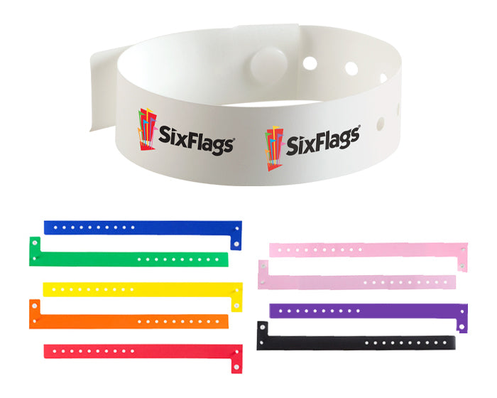brazaletes plastificado mate, irrompible, con broche de seguridad. se adapta a la muñeca. área máxima de impresión: 9 x 12 cm.