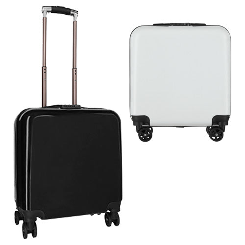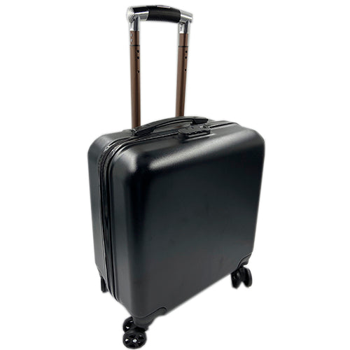 maleta de plástico para viaje con textura y acabado mate, ruedas giratorias, asa metálica retráctil con silicón y candado de seguridad.