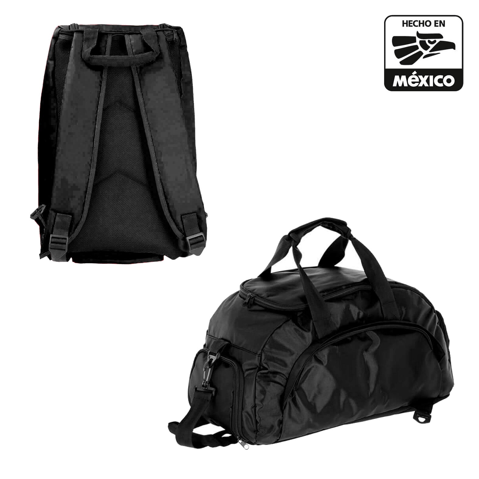 maleta deportiva que se convierte en mochila, con 2 broches de seguridad ajustables y tirantes acolchonados. incluye zapatera y dos compartimentos exteriores, asas y correa ajustable.