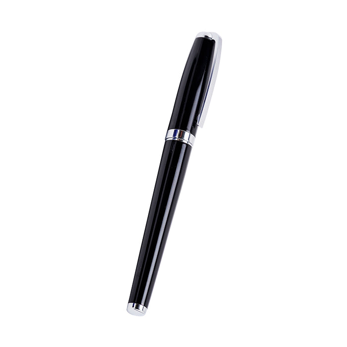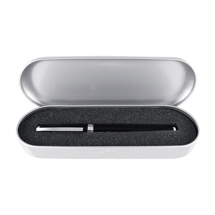 bolígrafo metálico roller ball de tinta negra, con escritura fluida. incluye estuche de metal, ideal para regalo ejecutivo o corporativo.