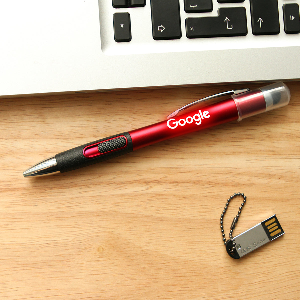 bolígrafo retráctil fabricado en plástico con apariencia metálica, luz interior del color del barril, puntero touch y tinta de escritura negra.