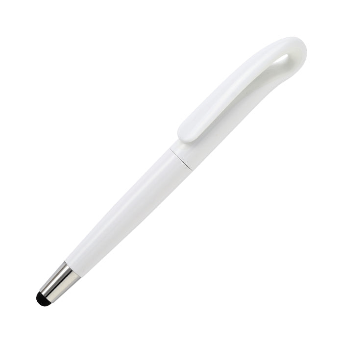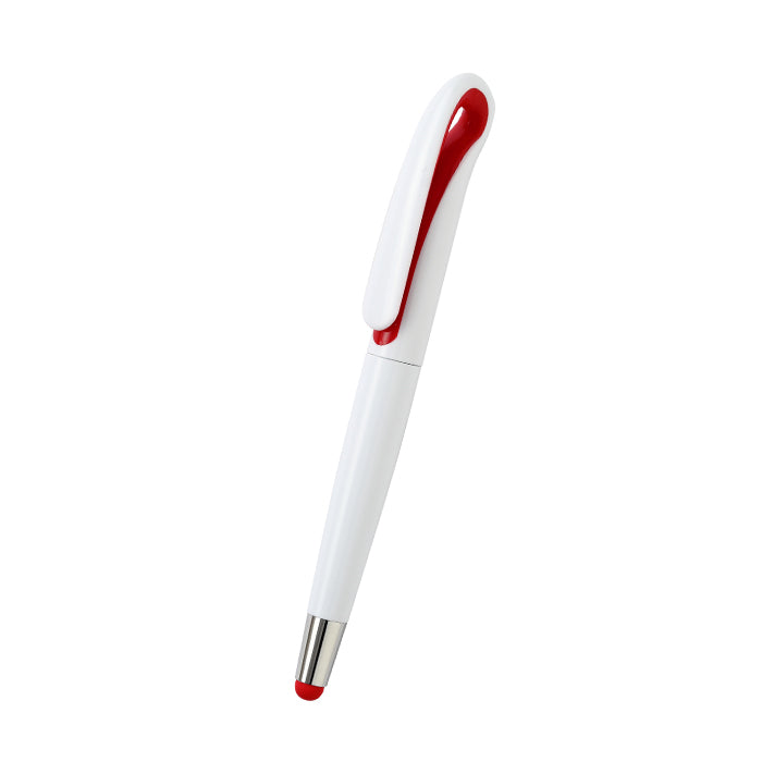 bolígrafo de plástico con giro, touch, cuenta con detalle de color y tinta de escritura azul.