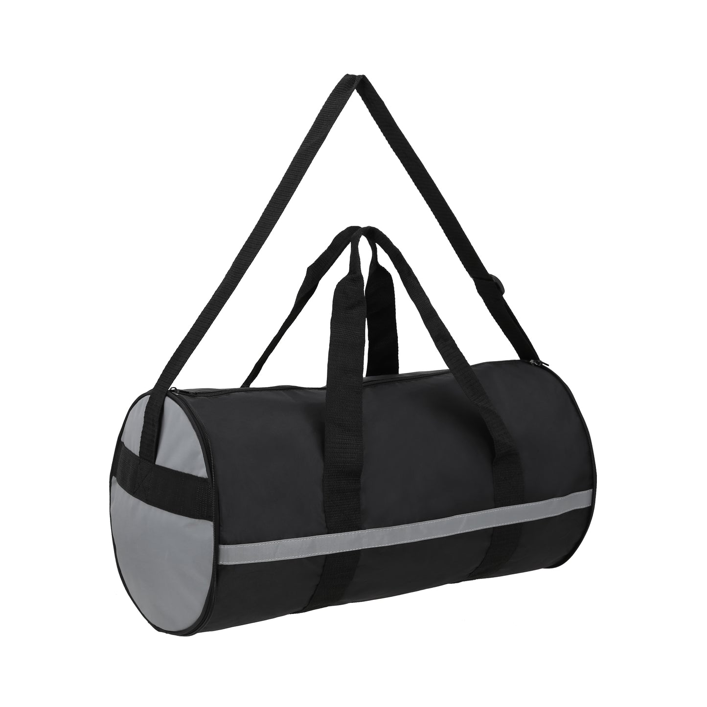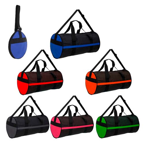 maleta deportiva plegable, doble cierre, doble asa y correa ajustable.