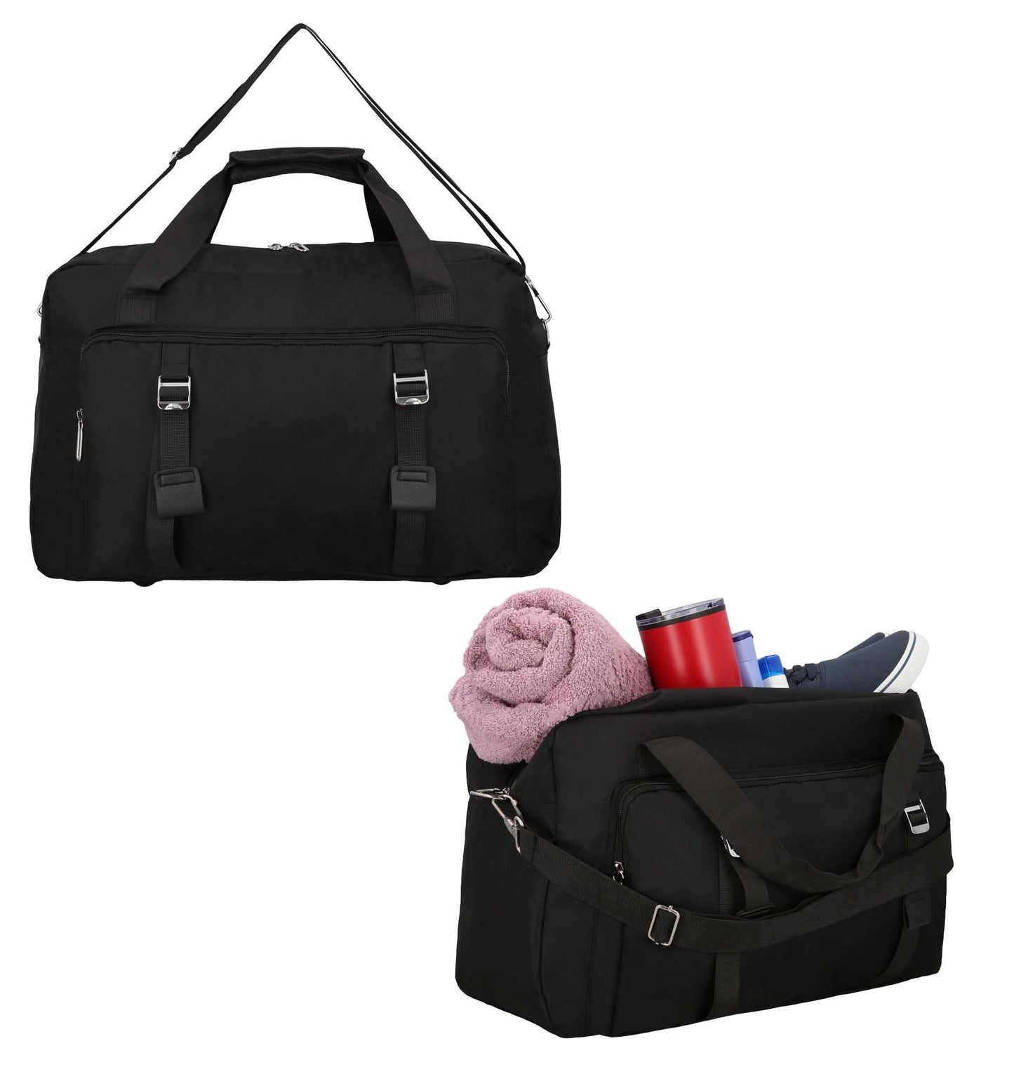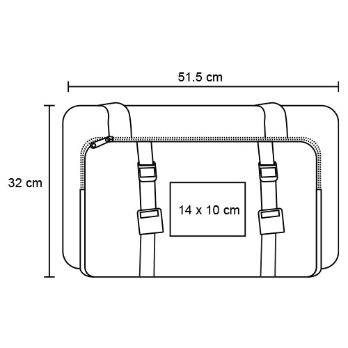 maleta de 2 compartimentos, 1 compartimento principal con bolsa interna plastificada, 1 compartimento frontal, dos asas y correa ajustable.