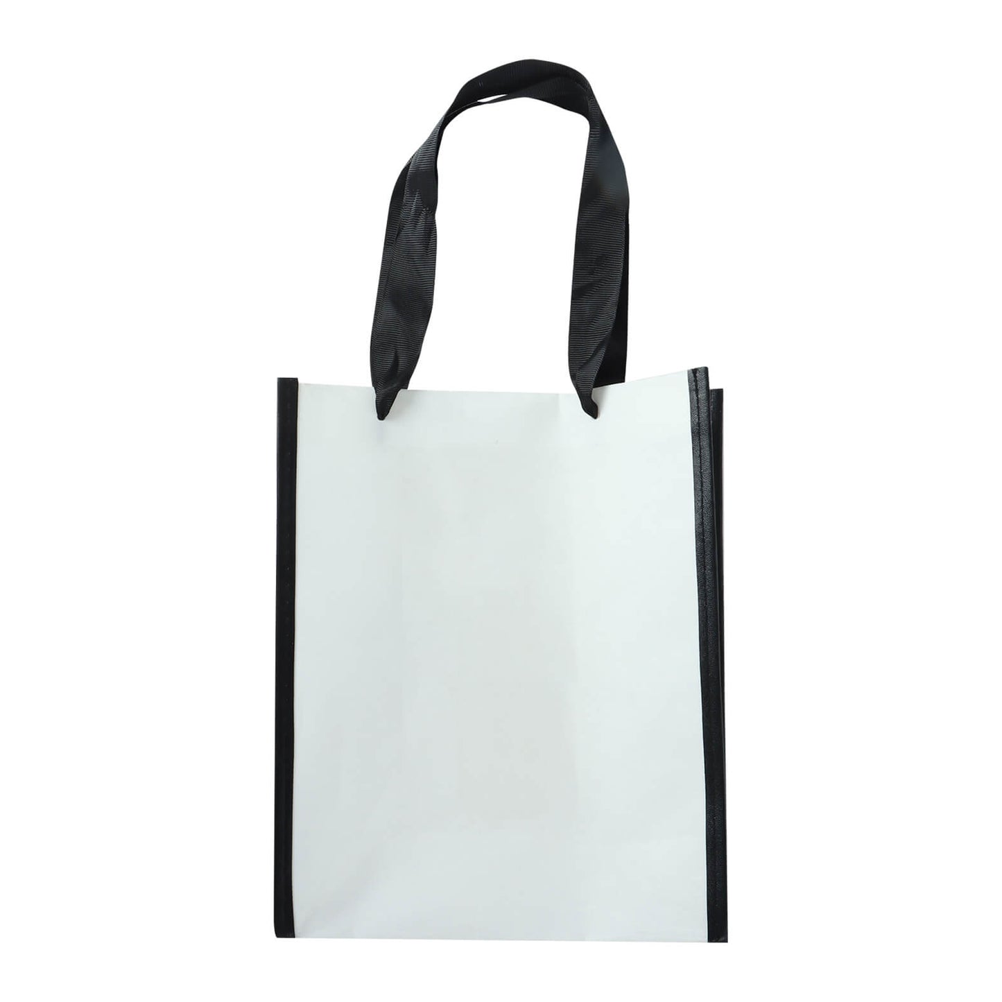 bolsa ecológica de r-pet cosida y con asas de tela de 130 gr/m2.