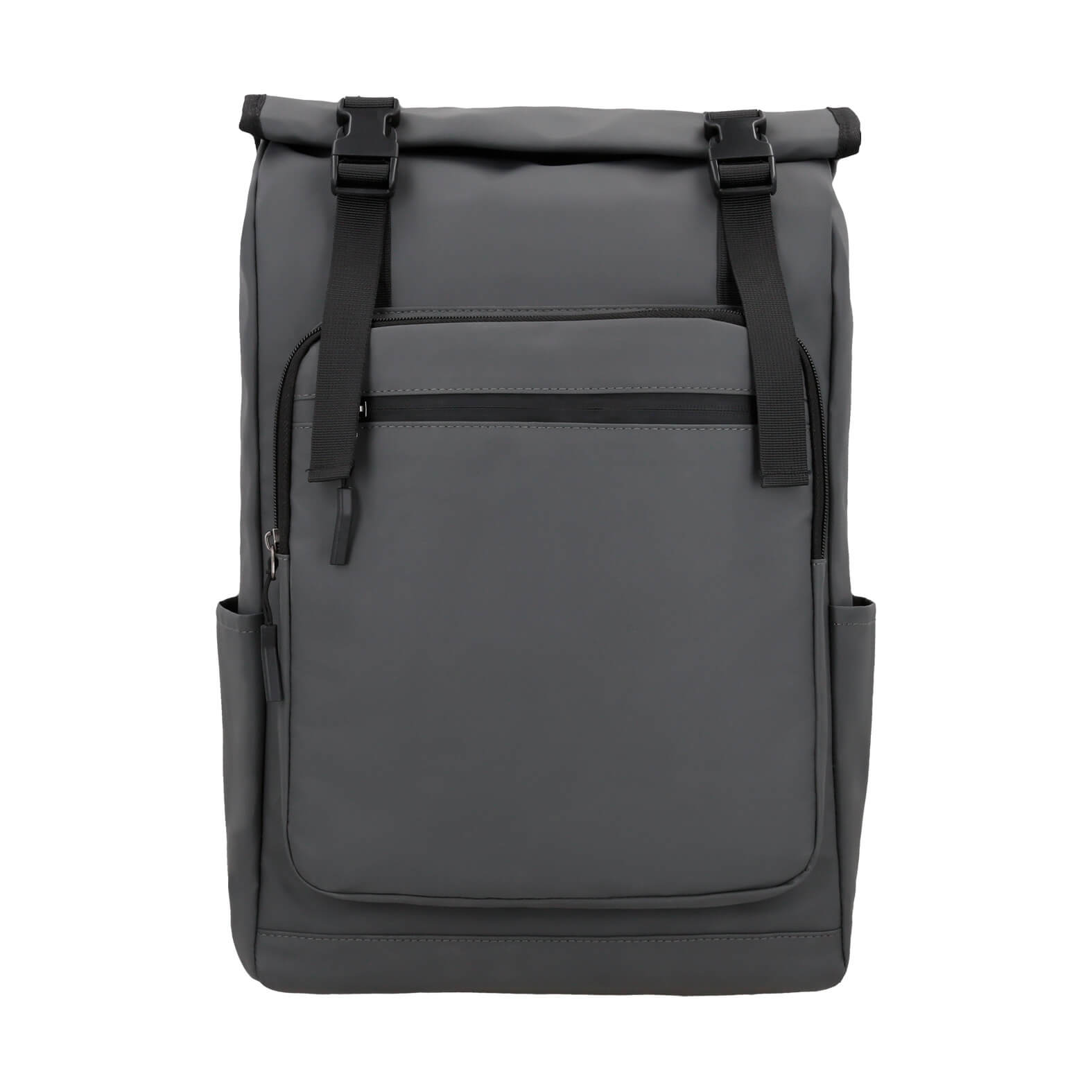 mochila extensible enrollable con 1 compartimento principal de doble acceso, 1 bolsa interna de malla con cierre, porta laptop, doble broche, 2 compartimentos frontales de cierre, 2 bolsas laterales, carry on, tirantes acojinados y asa superior.