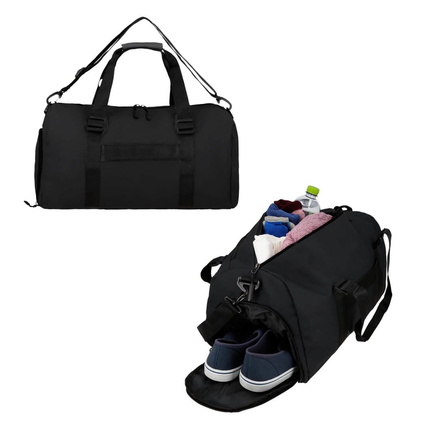 maleta de 1 compartimento principal con 1 bolsa interna, 1 compartimento trasero, zapatera, doble asa superior y correa ajustable.