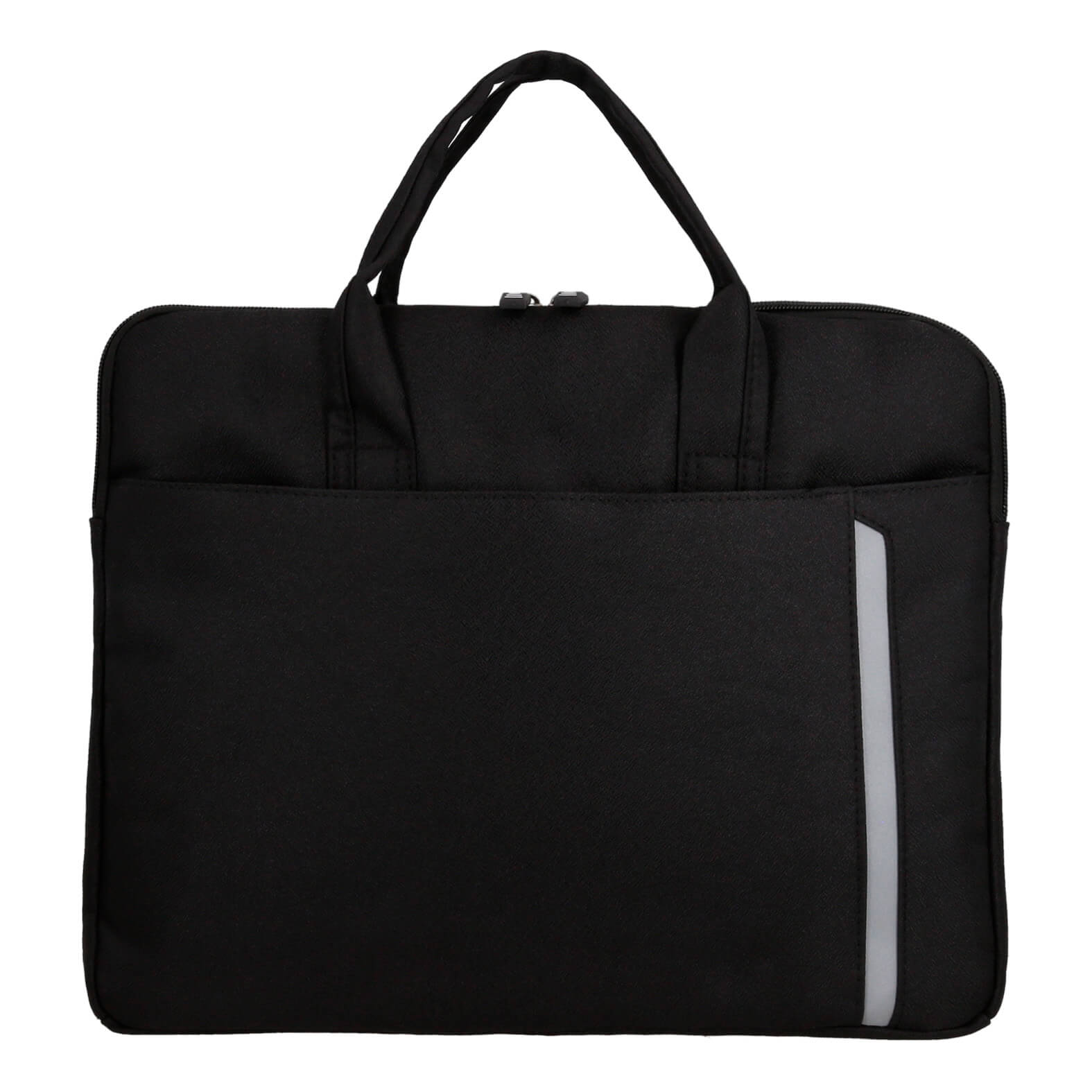 portafolio de poliéster con compartimento principal de interior afelpado, 1 compartimento frontal, carry on y 2 asas.