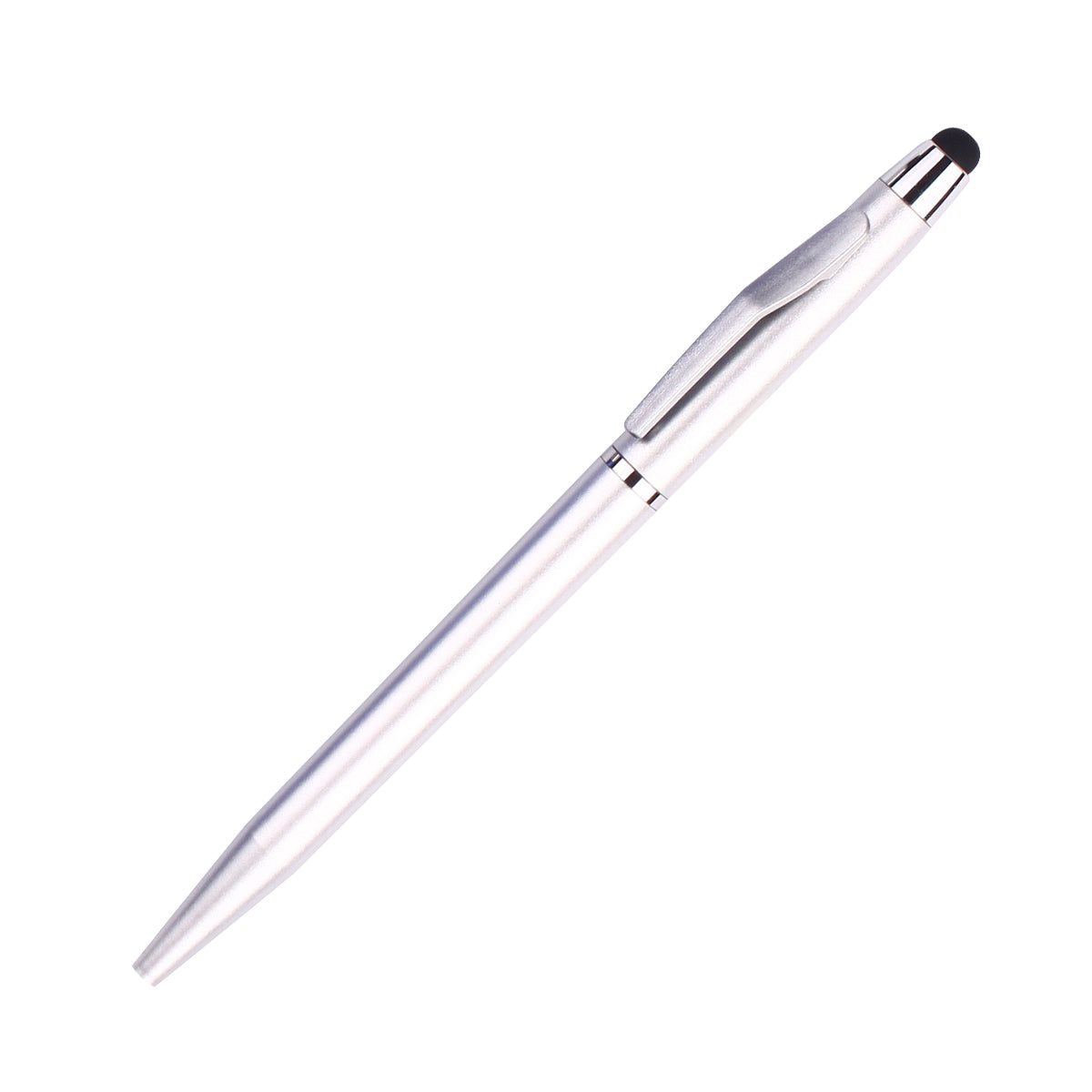 bolígrafo con barril de plástico abs y detalles de plástico cromado en clip y touch en la parte superior. tinta de escritura negra.