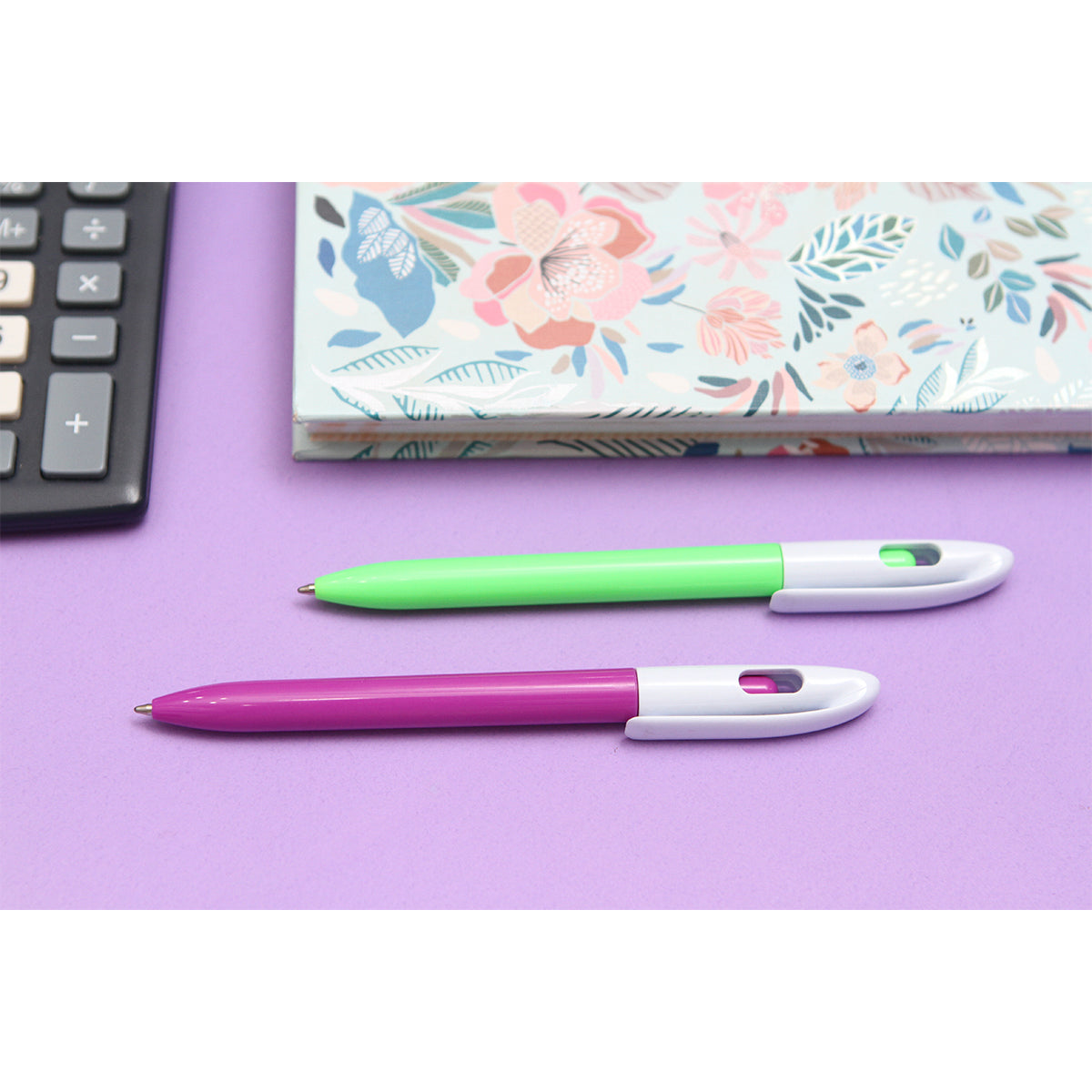 bolígrafo twist fabricado en plástico. cuenta con un mecanismo twist para extender o retraer la punta. con detalle de clip blanco agrega un toque de contraste. tinta de escritura negra.