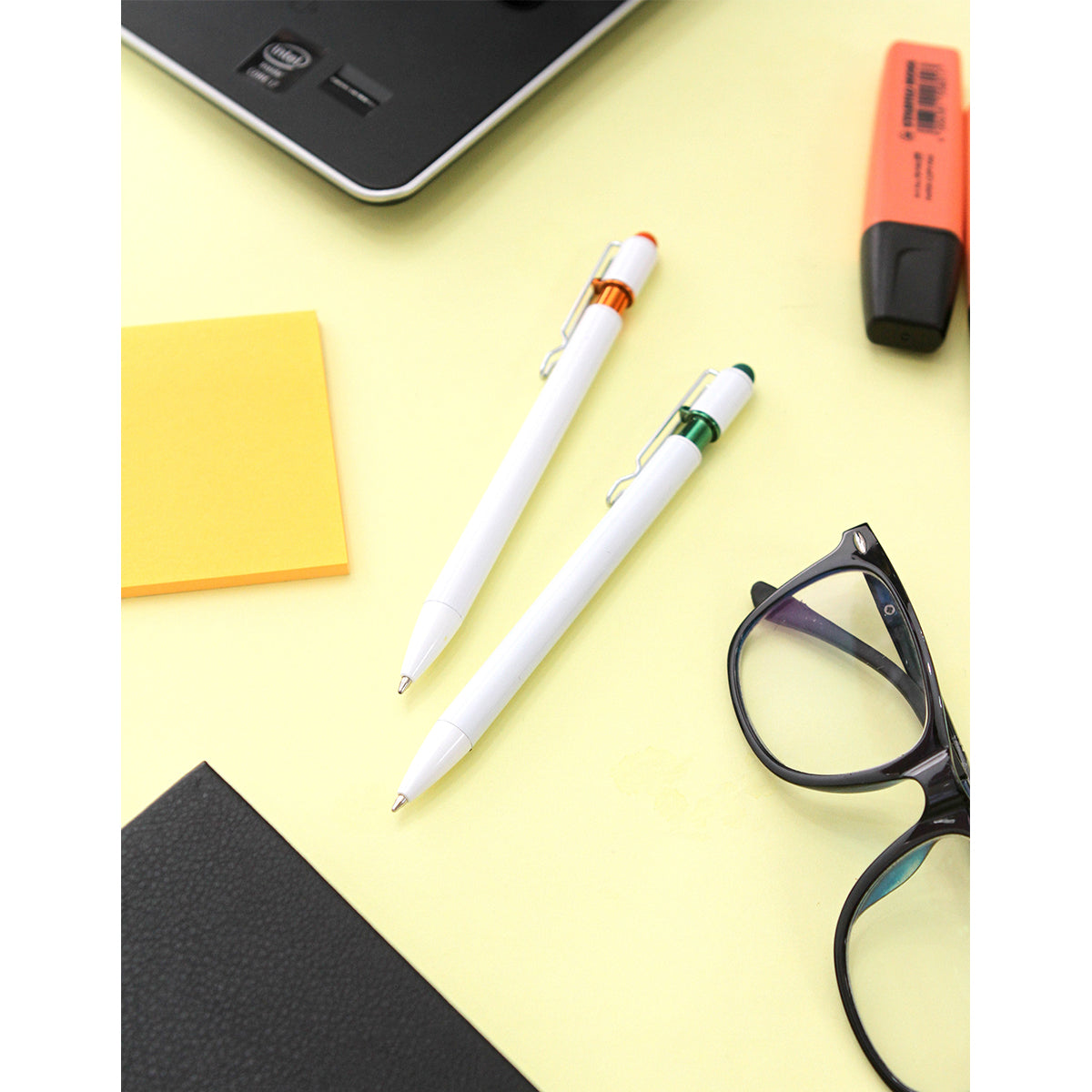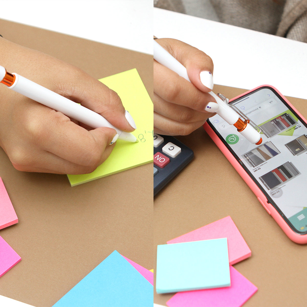bolígrafo retráctil fabricado en aluminio con puntero touch y clip metálico. al grabarla destapa en color. tinta de escritura azul.