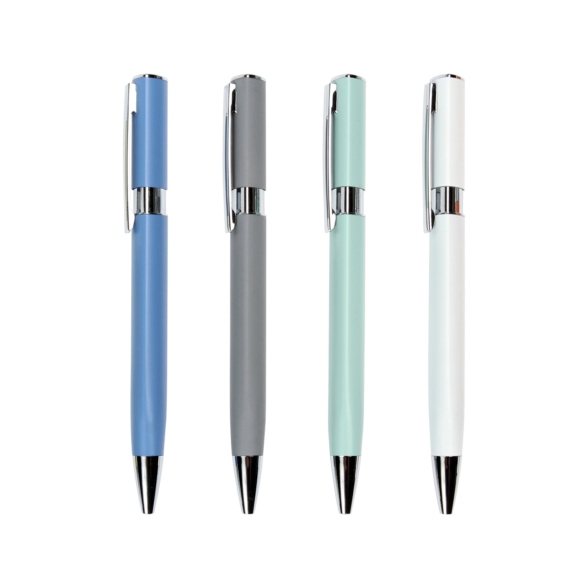 bolígrafo retráctil fabricado en aluminio con diseño triangular ergonómico, clip y detalles cromados. tinta negra de alta calidad para una escritura cómoda y elegante.