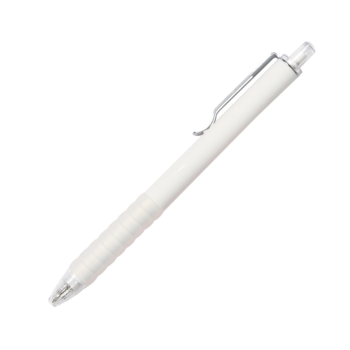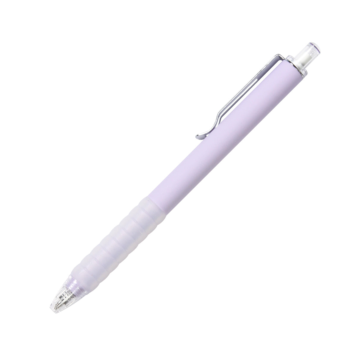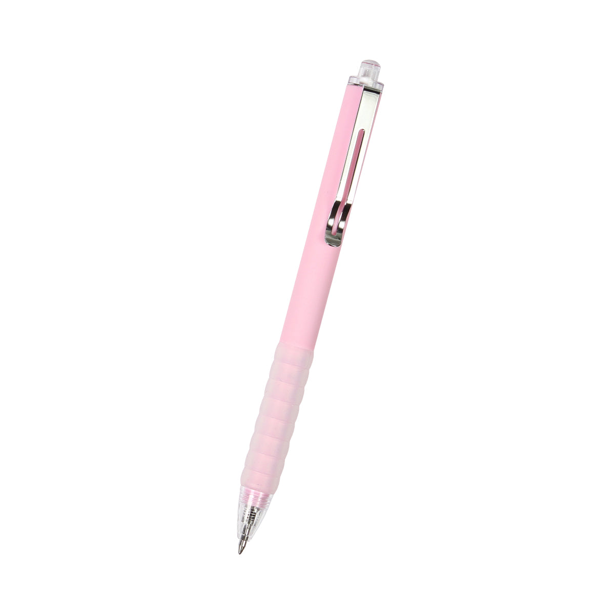 bolígrafo retráctil con barril de plástico con acabado rubber en tonos pastel. tinta de escritura negra en gel.