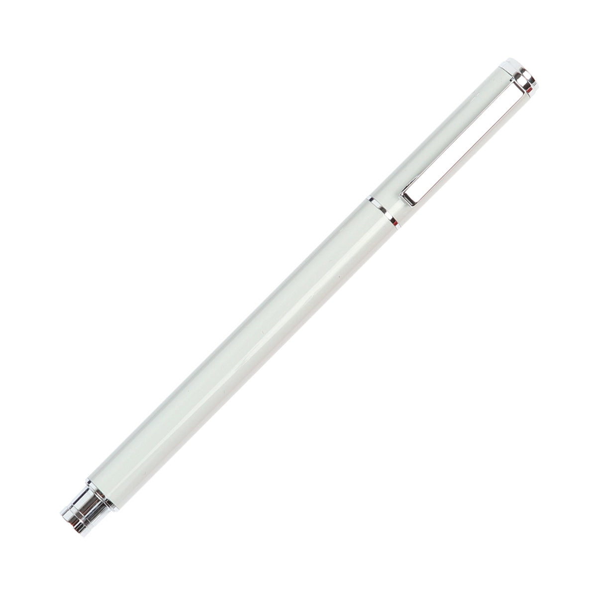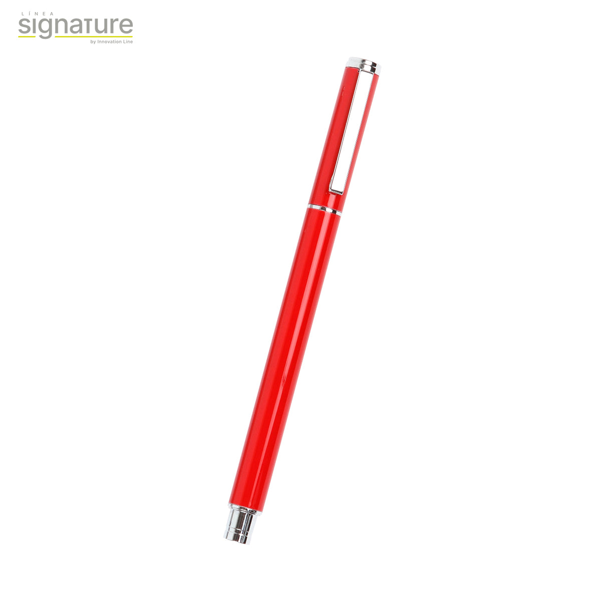 bolígrafo con barril fabricado en acero inoxidable, con detalles en color plateado, tipo roller pen, tinta de escritura negra. incluye caja de regalo color negro.