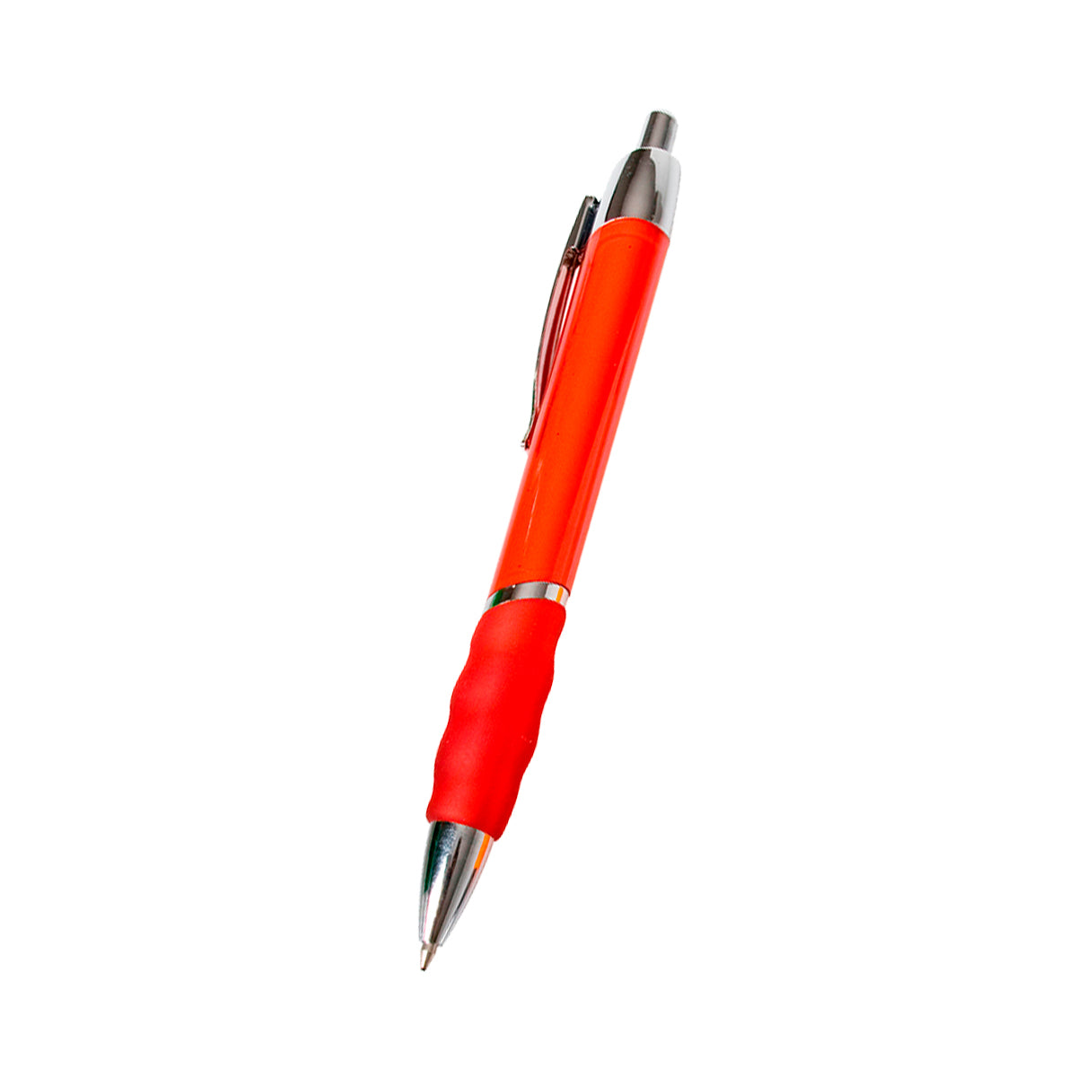bolígrafo retráctil de plástico con grip y tinta negra. su forma ergonómica proporciona un agarre cómodo y seguro para una escritura más fluida.