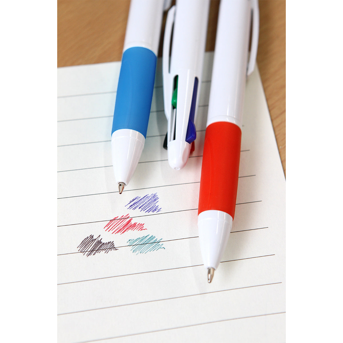 bolígrafo 4 en 1, con barril de plástico abs y grip suave, 4 colores de escritura (azul, negro, rojo, verde).