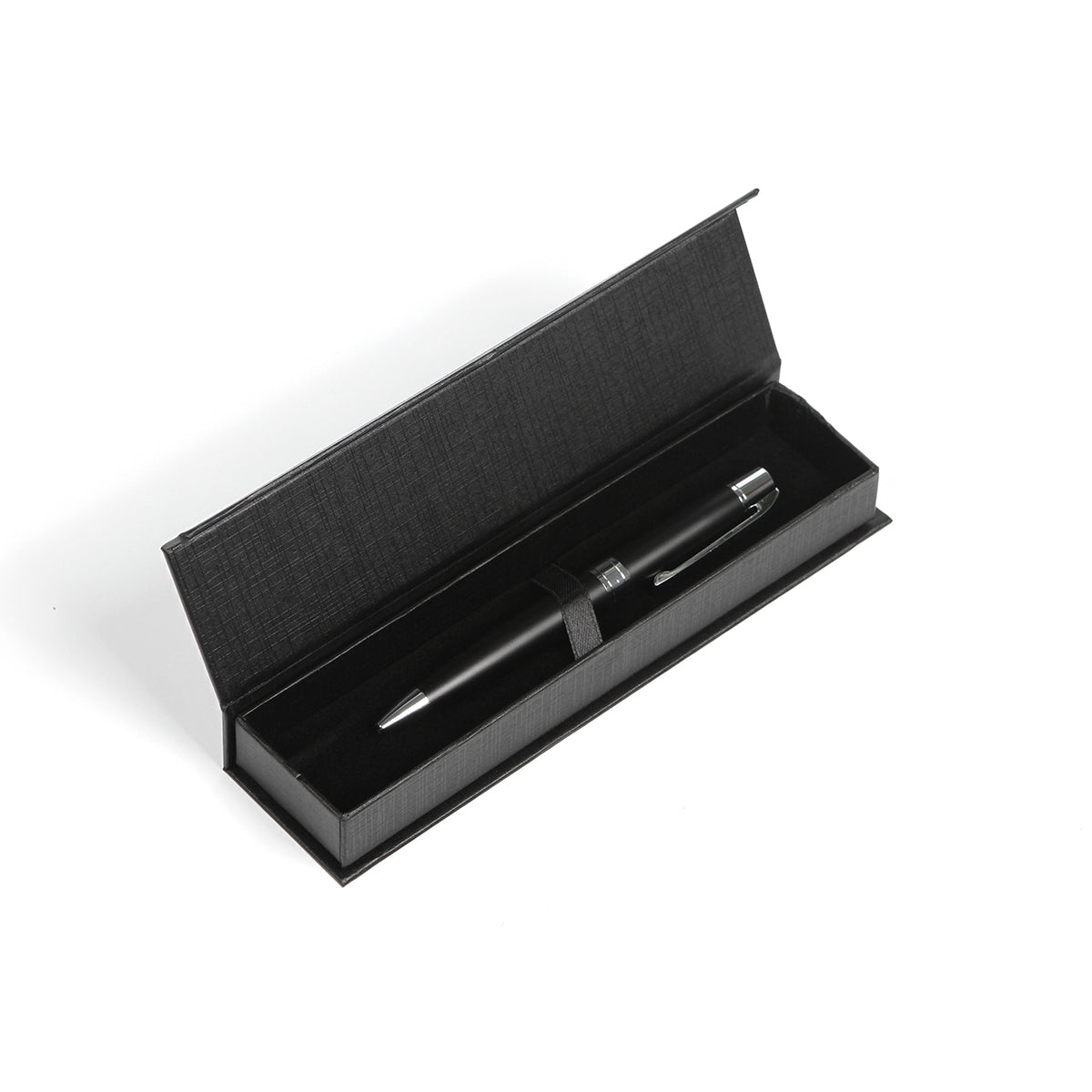 bolígrafo fabricado en metal, lo que le confiere durabilidad y una apariencia distinguida, cuenta con detalles cromados en la punta y el clip, lo que agrega un toque de brillo y refinamiento al diseño, tinta de escritura negra, incluye un estuche individual diseñado especialmente para proteger y resaltar la belleza del bolígrafo, es una elección excepcional.