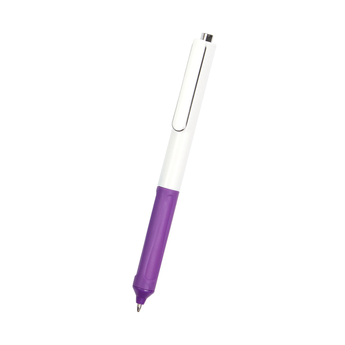 bolígrafo con click bi-tono. parte superior blanca y parte inferior a color. con la combinación de su diseño moderno a dos tonos y la comodidad que proporciona su acción de empuje, este bolígrafo se convierte en un accesorio versátil y agradable de usar. tinta de escritura negra.