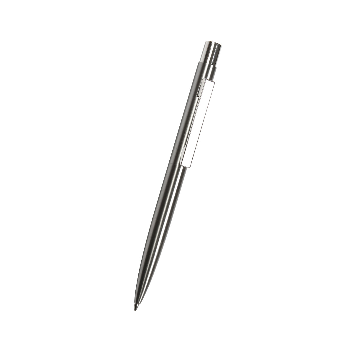 bolígrafo fabricado en acero inoxidable reciclado, con acción de empuje. incluye caja individual de cartón. su diseño moderno y duradero, junto con la inclusión de una caja individual de cartón, hacen de este bolígrafo una elección elegante y práctica para tu uso diario o como un regalo consciente del medio ambiente.