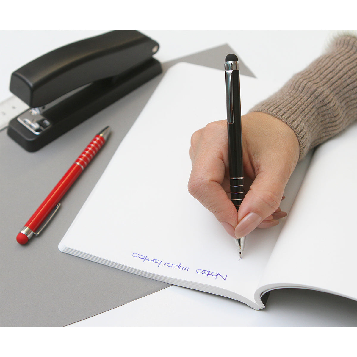 fabricado con un barril de aluminio, este bolígrafo ofrece durabilidad y resistencia, asegurando que pueda soportar el uso diario y mantenerse en excelentes condiciones, cuenta con un clip metálico cromado que te permite sujetarlo de manera segura, con touch de color que le da un aspecto moderno, utiliza tinta de escritura azul.