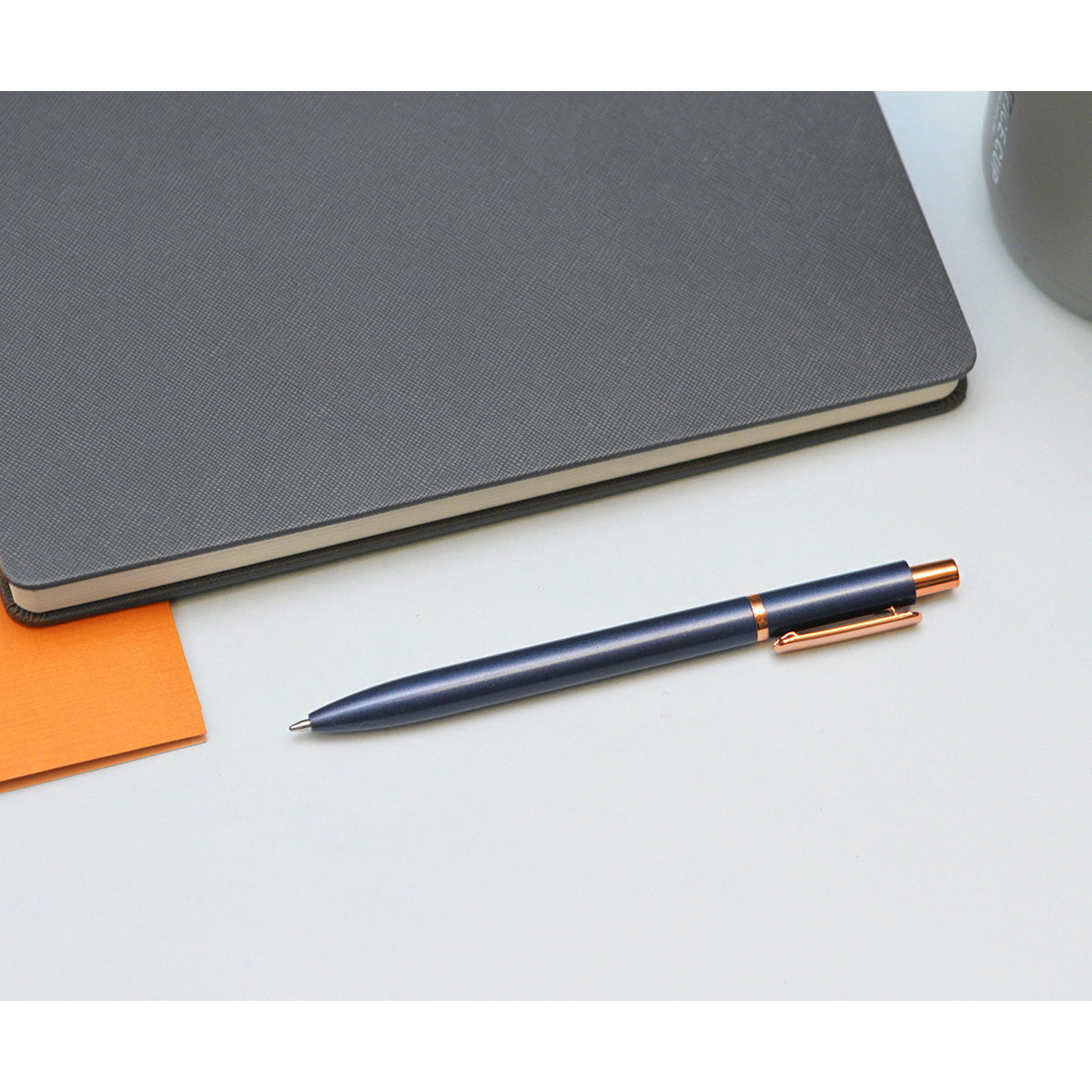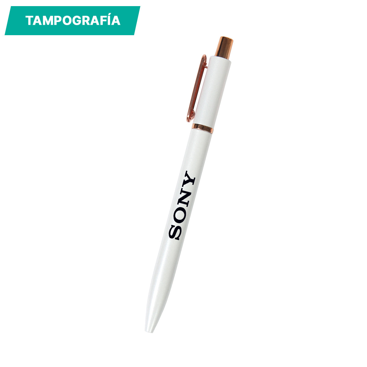 bolígrafo con barril de aluminio y detalles en metal cromado color rose gold es una elección elegante y sofisticada para tus necesidades de escritura, está equipado con tinta de escritura azul, incluye estuche de cartón individual, que agrega un toque adicional de elegancia y protección.