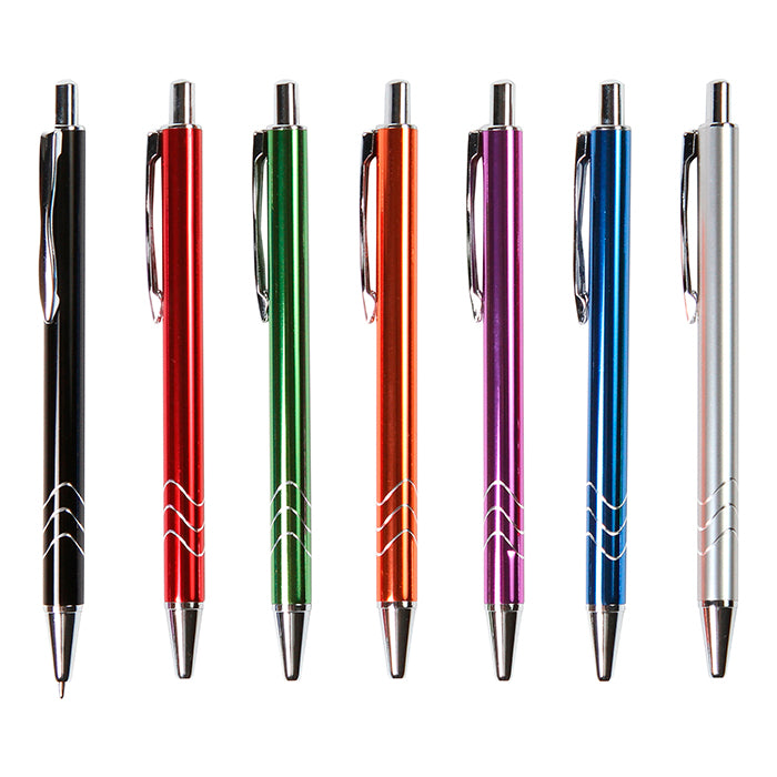 bolígrafo metálico retráctil con clip y detalles cromados. tinta negra de alta calidad para una escritura suave y precisa.