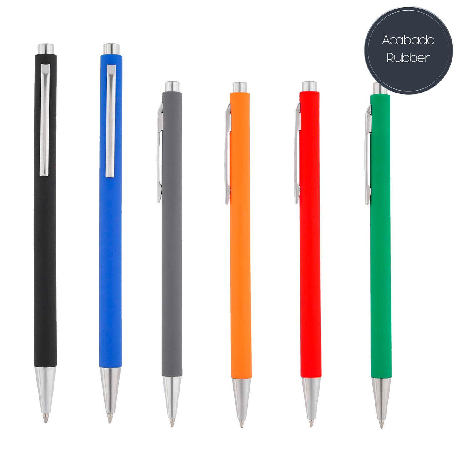 bolígrafo con acabado rubber, clip y mecanismo de click.