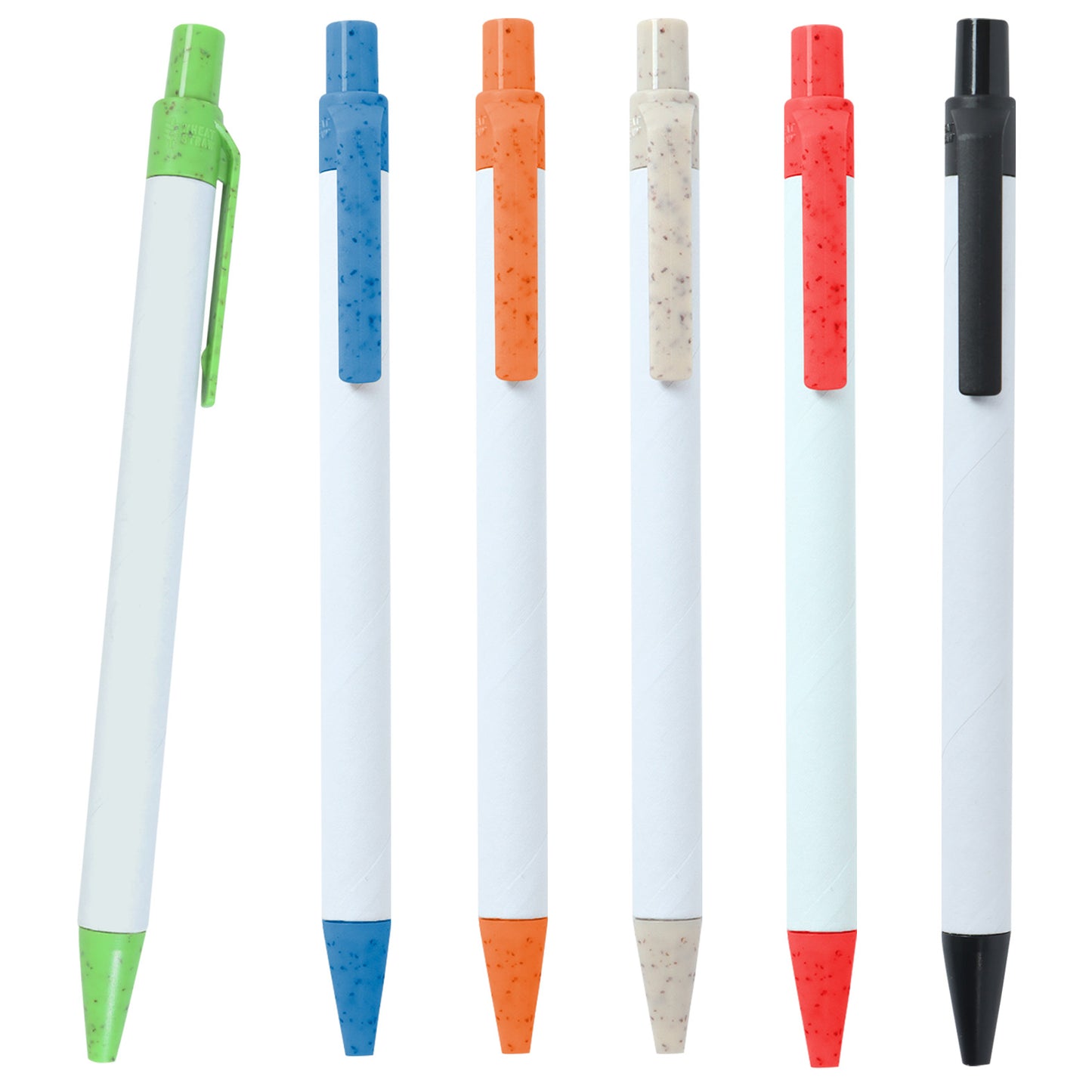bolígrafo de wheat straw con barril de cartón, clip y mecanismo de click.