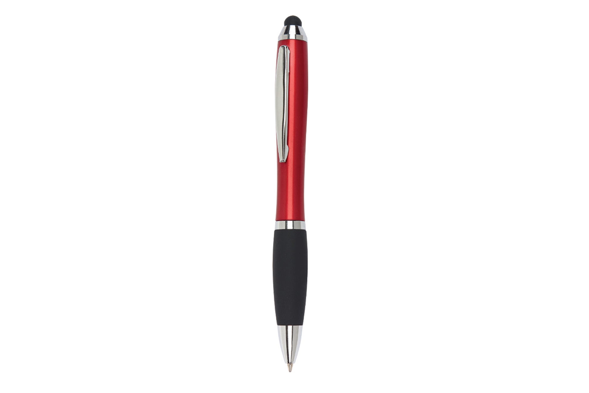 plástico mecanismo giratorio cuerpo curvo de color con detalles y clip metálicos. punta touch para pantallas táctiles. tinta negra.