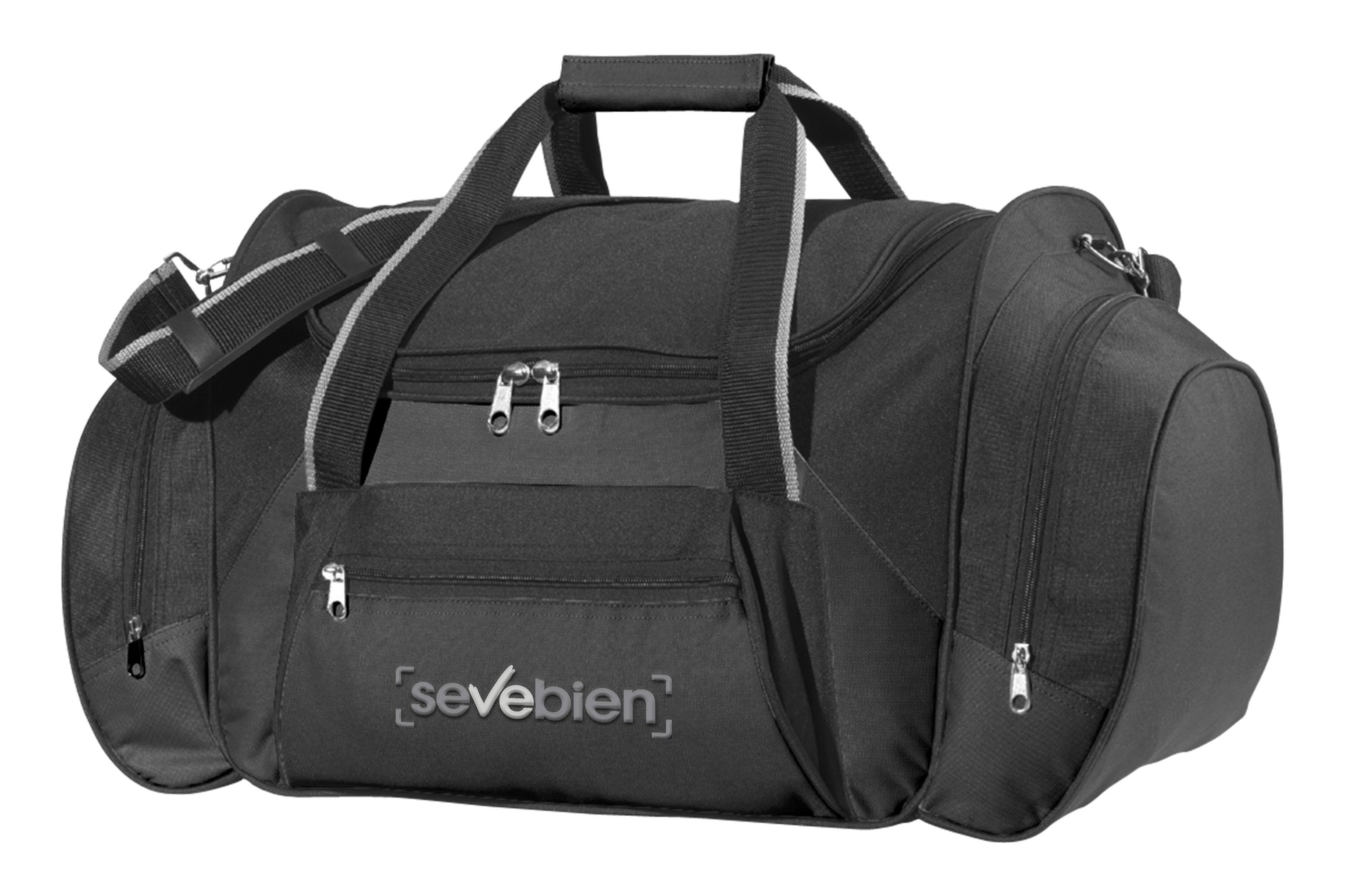 60 x 33 x 29 cm. capacidad 45 litros aprox. poliéster 600d. bolso de viaje o deportivo. bolsillo frontal y compartimentos laterales externos con cierre. apertura superior completa con cierre. herrajes metálicos. correa regulable y desmontable con hombrera de goma. manijas con velcro. soporta hasta 10 kilos de carga.