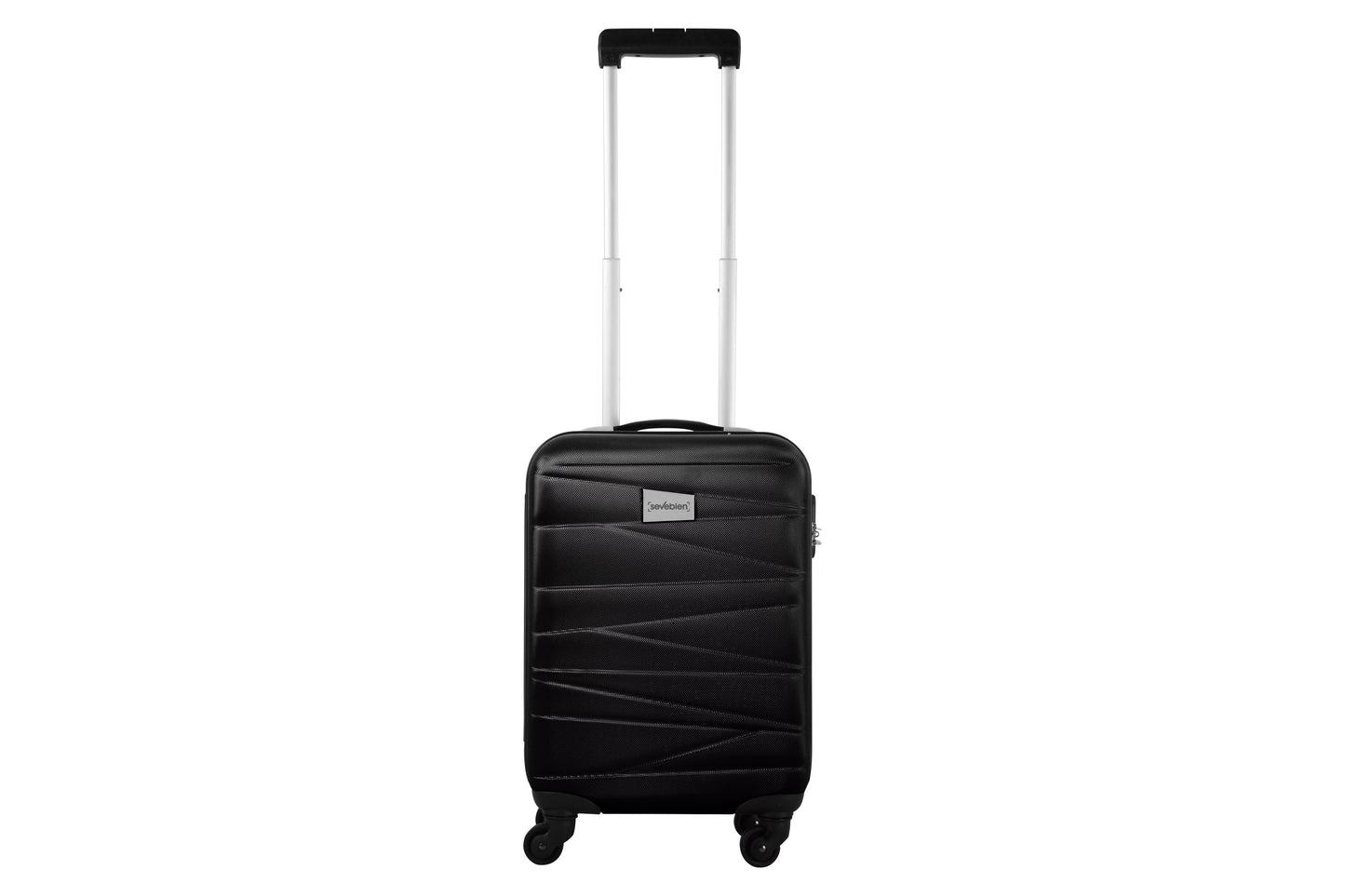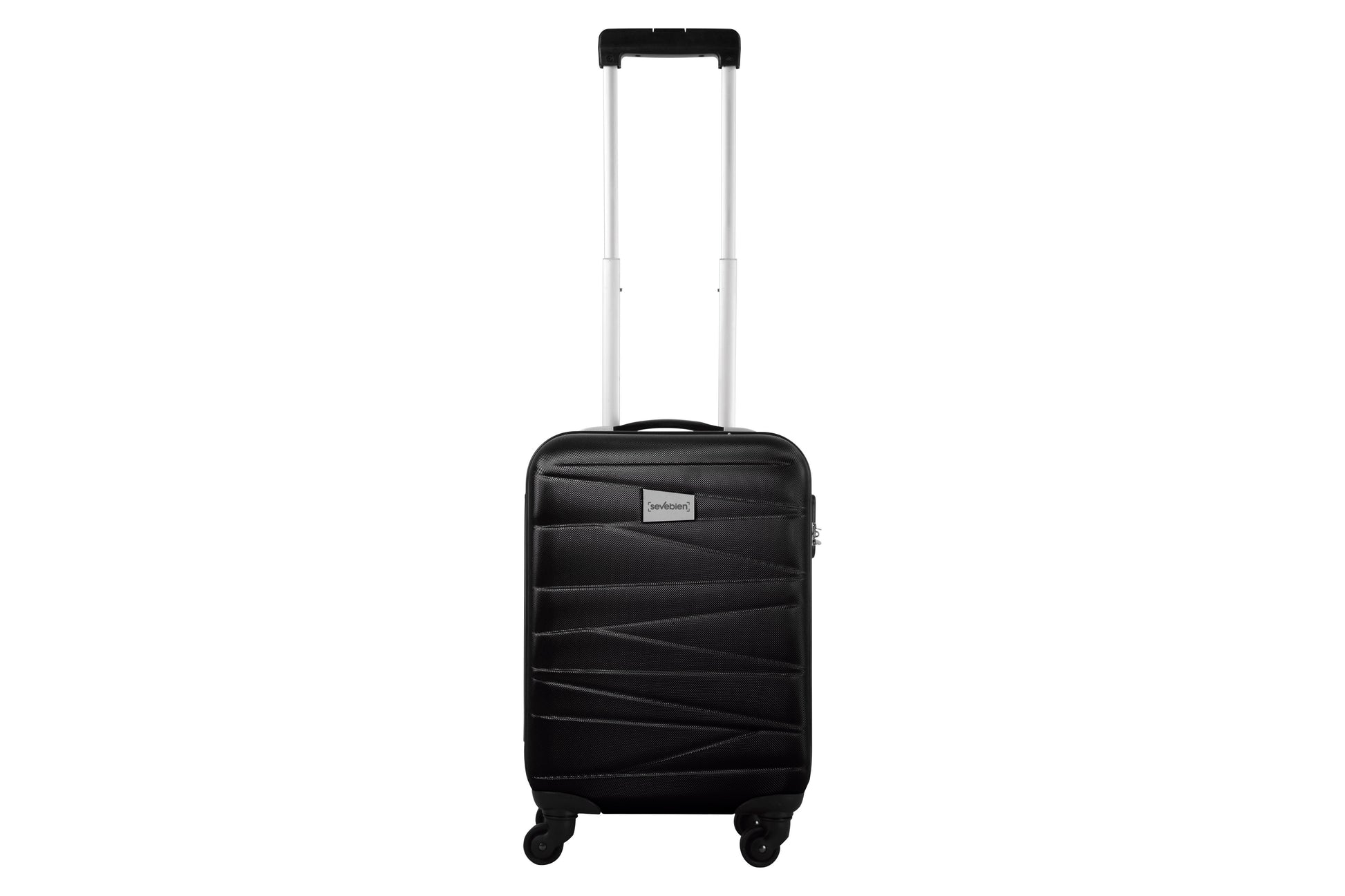 34 x 54 x 20 cm. (total). capacidad 31 litros. abs. valija / maleta pequeña. 4 ruedas con giro 360°. manija de transporte reforzada. mango extensible hasta 54 cm. 2 posiciones. interior: 2 compartimentos principales con cierre y elásticos ajustables. placa metálica desmontable para grabado (medida: 6 x 4 cm.) candado incluido con combinación.