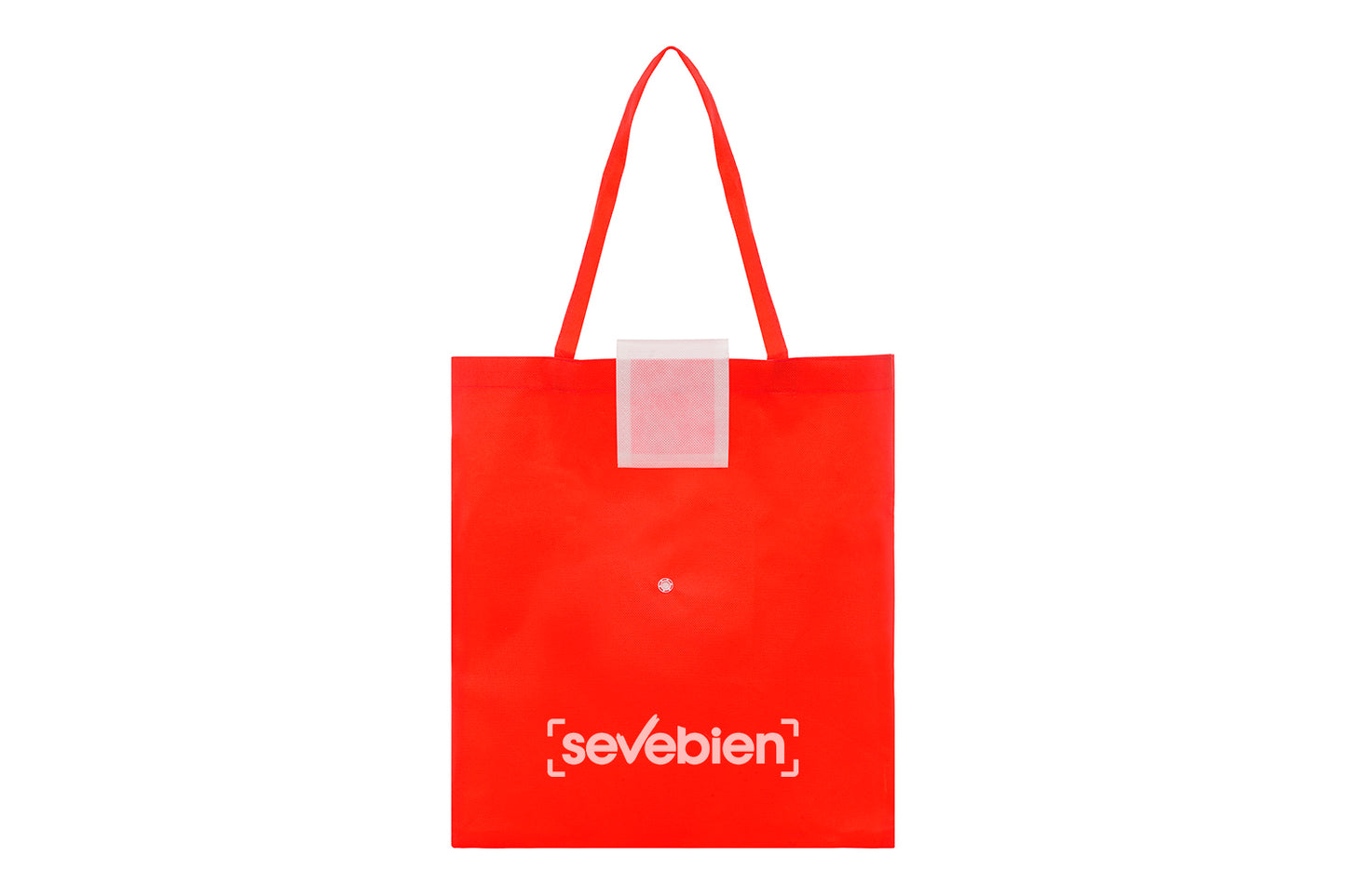 13 x 11 cm. (cerrado) 40 x 34,5 cm. (abierto). non woven. bolsa ecológica, posee una solapa color blanco con botón que permite compactar la bolsa. mayor resistencia debido a que son cosidas.