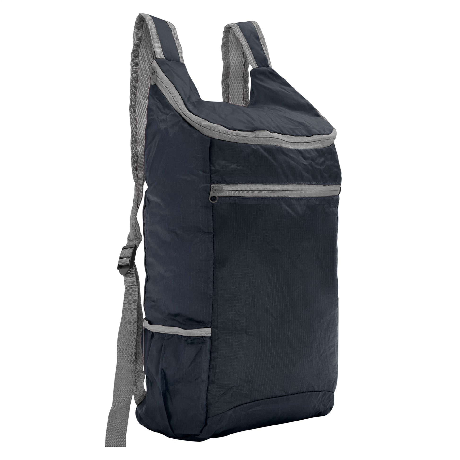 resistencia y practicidad en cada aventuramochila plegable. compartimento principal con cierre. bolsillo lateral elastizado. bolsillo frontal con cierre horizontal. cierres metálicos. correas regulables reforzadas y acolchadas. se comprime fácilmente en una bolsa pequeña con cierre ajustable.