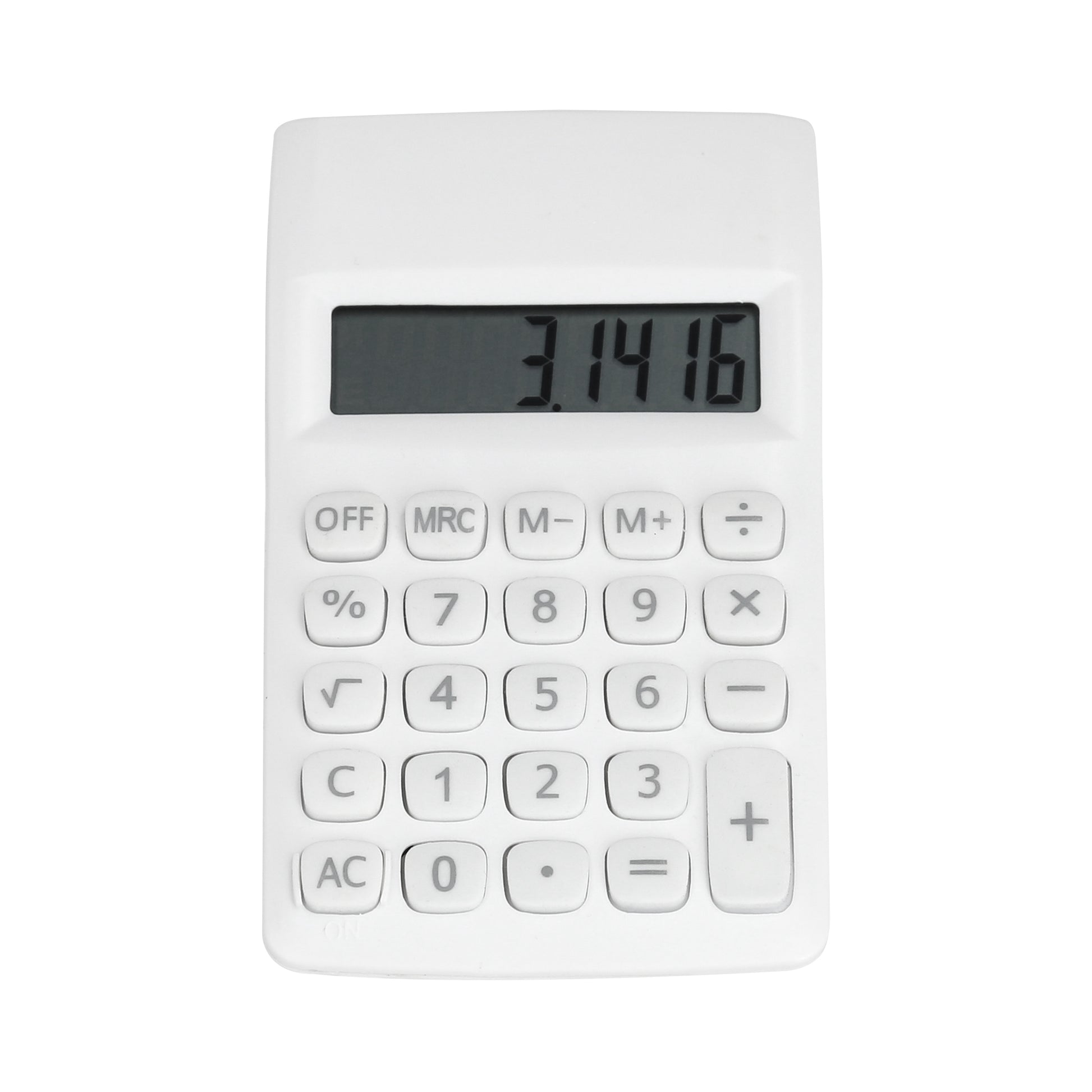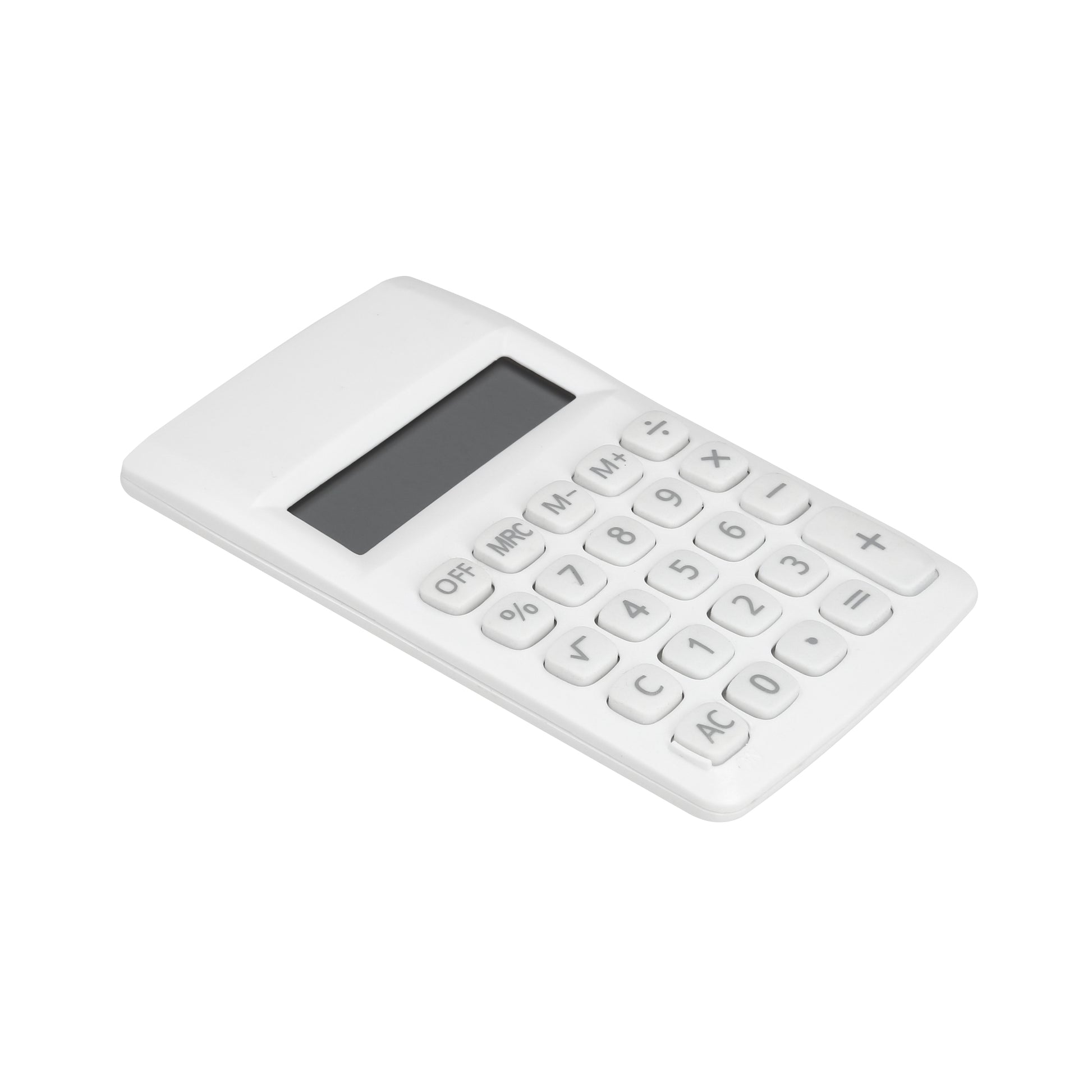 calculadora de 8 dígitos con botones de cuadro. incluye baterías.