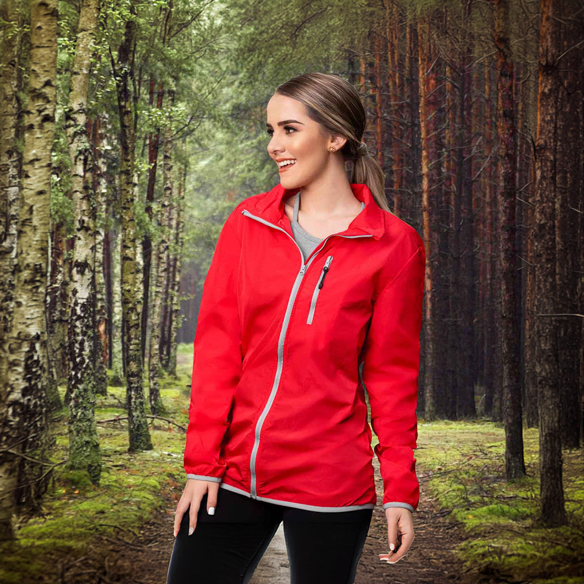 chamarra deportiva ligera plegable con funda en cierre. 100% poliéster.