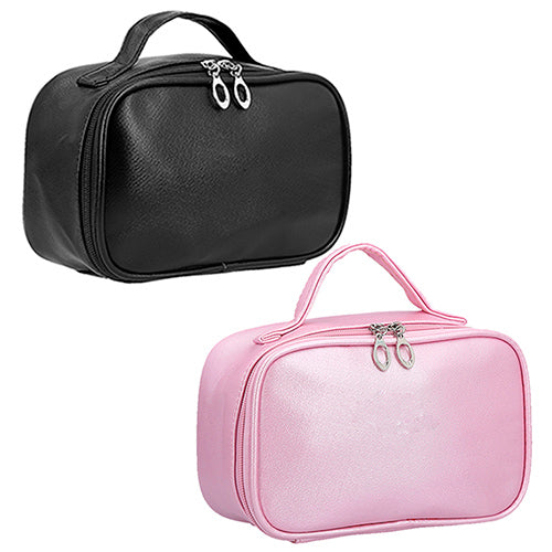 cosmetiquera de poliéster con espejo y 2 separadores internos.