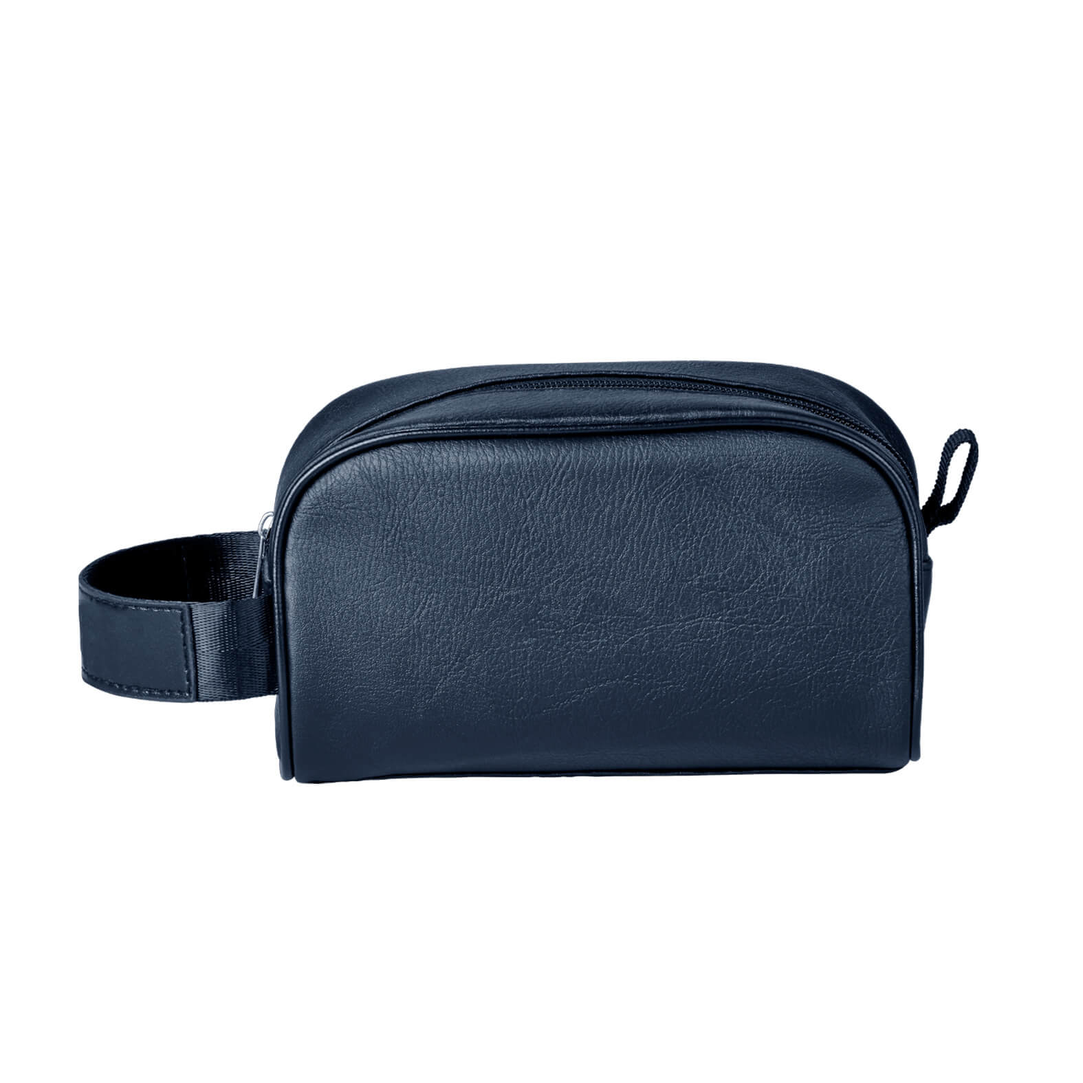 neceser de curpiel con interior forrado, cierre y asa.