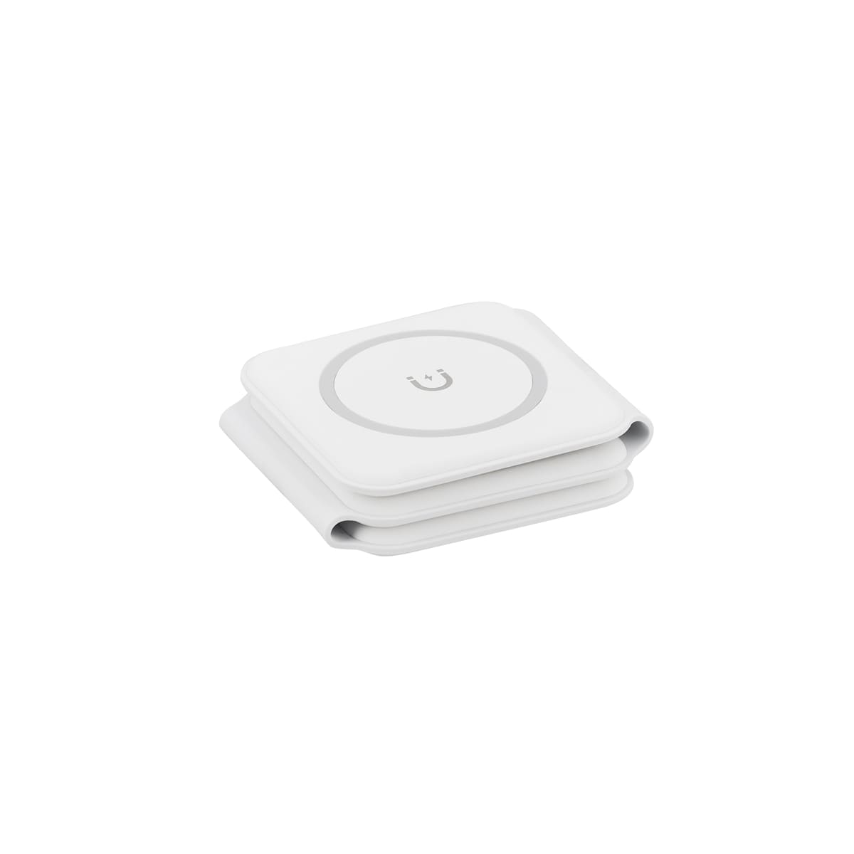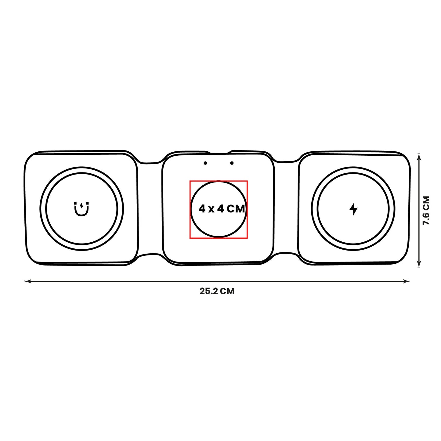 cargador inalámbrico con diseño plegable. terminado tipo rubber. triple función. incluye estación de carga para smartphone, reloj inteligente y audífonos. velocidad de carga para smartphone de 15w (compatible con 5w / 7.5w / 10w), velocidad de carga de 3w y 2.5w para audífonos y reloj inteligente respectivamente. incluye cable auxiliar de 1m con conector tipo c en entrada y salida. led indicador de carga. compatible con dispositivos que cuenten con tecnología de carga inalámbrica.