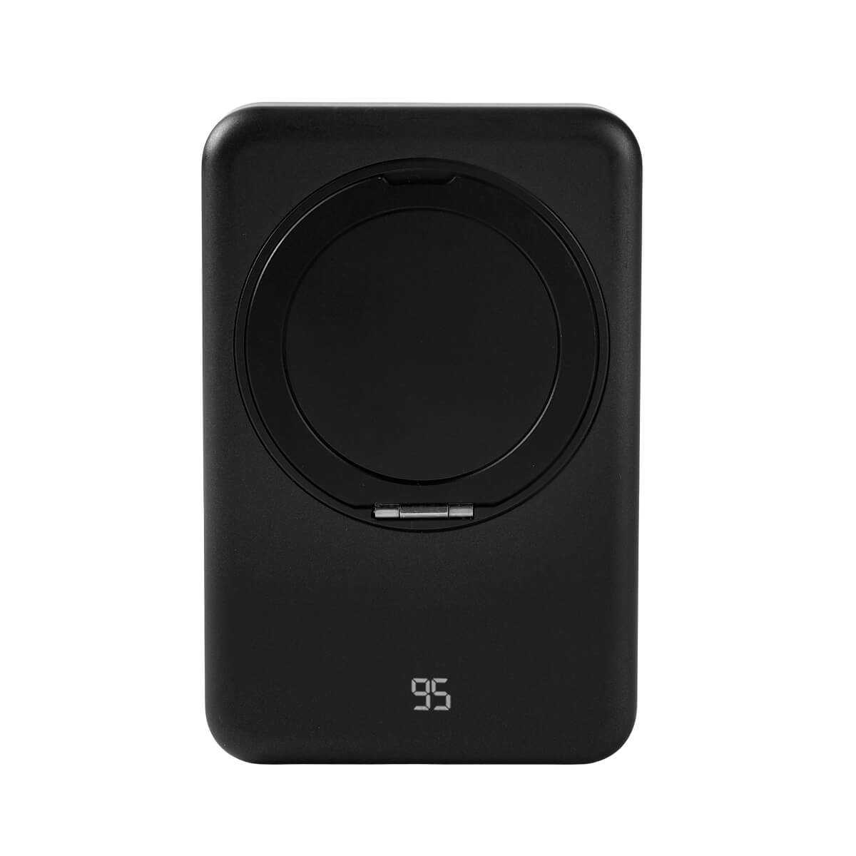 batería auxiliar para smartphone, capacidad 10,000 mah con carga inalámbrica y tecnología magnética que se fija de manera automática y segura en la posición más optima para iniciar la carga. incluye botón de encendido y anillo rotatorio 360° ideal como soporte y agarre. cuenta con un puerto de entrada y uno de salida tipo c. incluye cable de carga tipo c y caja individual.