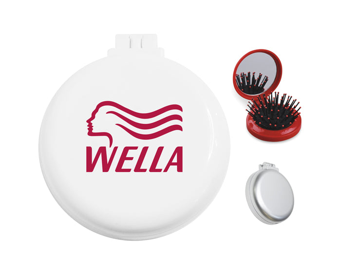 estuche plegable de plástico, con cepillo retráctil y espejo.