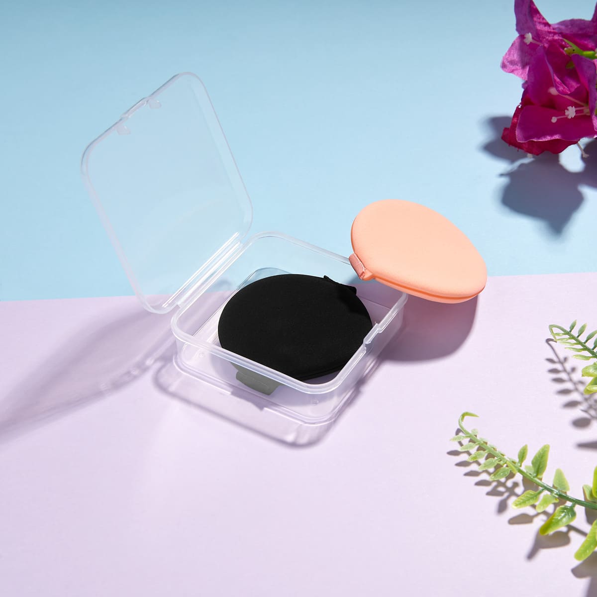 set de 2 esponjas aplicadoras de maquillaje. incluye un listón posterior que permite un cómodo agarre para la aplicación. es suave y absorbente al agua gracias al material hidrofílico, lo que permite crecer su tamaño cuando esta mojada. puedes utilizarla: en seco, para fijar maquillaje por más tiempo, o húmedo para un terminado más delicado. incluye estuche de plástico.